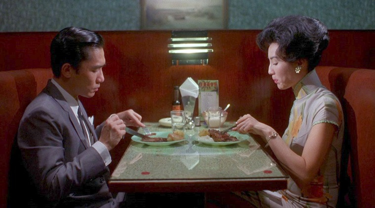 내가 이 영화에서 가장 좋아하는 장면은 양조위와 장만옥이 레스토랑에서 함께 식사를 하는 장면이다. 식욕이 돋는 식사장면은 아니지만 Nat King Cole의 Aquellos ojos verdes가 흘러나오는 세련된 도시의 분위기와 에메랄드 빛이 감도는 어딘가 창백한 분위기가 낭만적으로 어우러져 있으며, 그 속에 두 배우의 눈빛과 행동이 모든 것을 이해하게 한다. 이 장면만 따로 보아도 늘 그 분위기에 잠기곤 한다. 이 장면에서 그들은 서로의 남편과 아내가 어떻게 바람을 폈을지 상상하며 그에 맞게 흉내내본다. 그러나 어느 순간부터는 흉내와 진심의 경계가 모호해지는 듯 하다. 머리의 생각과 그들의 말에서는 '내 남편은 이렇게 하지 않았을 거다.', '내 아내는 이렇게 먹는 걸 좋아했지.' 라고 하며 단지 흉내내는 것이라고 선을 긋지만, 마음과 눈빛 그리고 숨길 수 없는 자잘한 행동에서는 깊은 감정적 공유가 이루어지고 있다는 느낌을 받았다. 서로를 위로하고, 진심을 수줍게 내보이는 듯한. 자신들도 모르게 서로에게 조금씩 스며들고 위안을 받는 따뜻한 느낌이 레스토랑의 차갑고 푸른 분위기와 대비되어 나타난다. 참으로 매력적이다. 거기에 장만옥의 우아한 목소리까지. 이러니 나는 이 장면을 사랑하지 않을 수 없다.