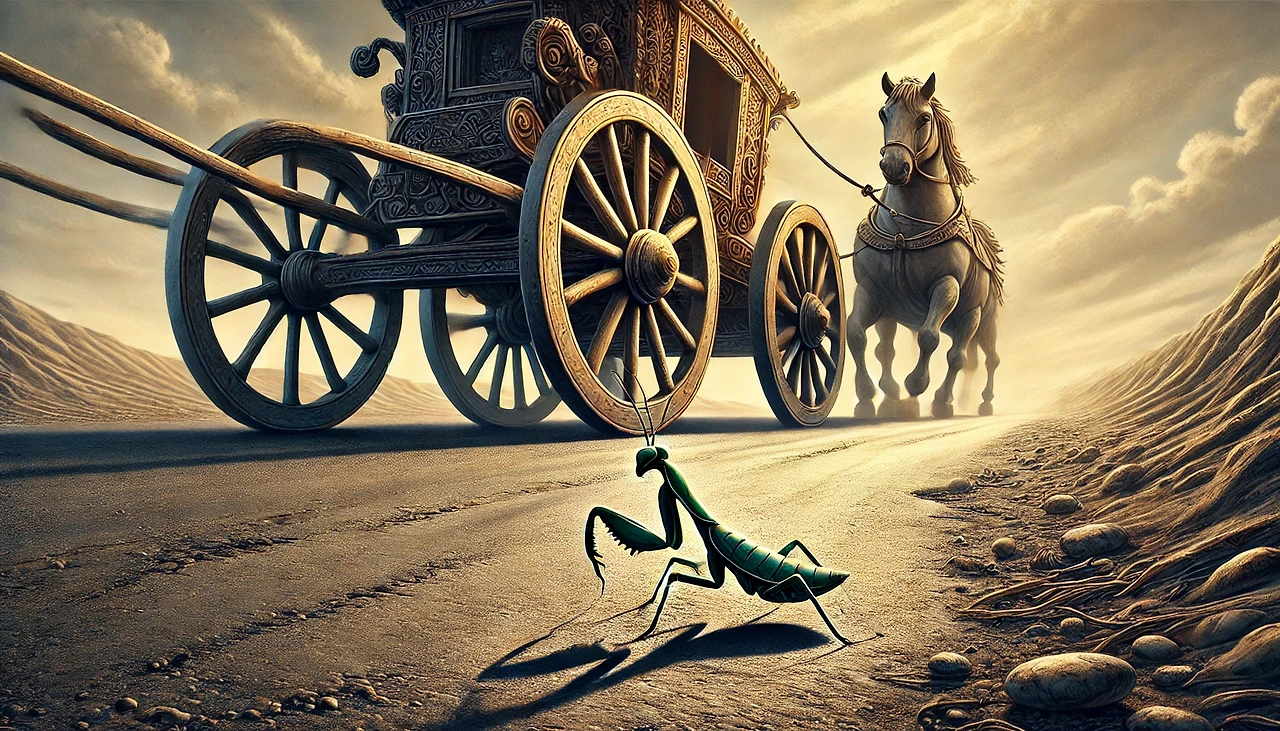 당랑거철의 이야기는 우선 그 자체로 무모함에 대한 경고로 읽힌다. 사마귀가 아무리 강한 의지로 거대한 수레에 맞선다 해도, 그것이 수레의 진행을 멈추게 하지는 못한다. 자연의 법칙처럼, 인간 사회에도 거스를 수 없는 흐름이 있다. 특히 역사의 흐름 속에서 민주주의는 그러한 거대한 수레바퀴와도 같다. 독재와 억압, 부당한 권력의 저항에도 불구하고 민주주의는 시대와 함께 꾸준히 발전해 왔다.