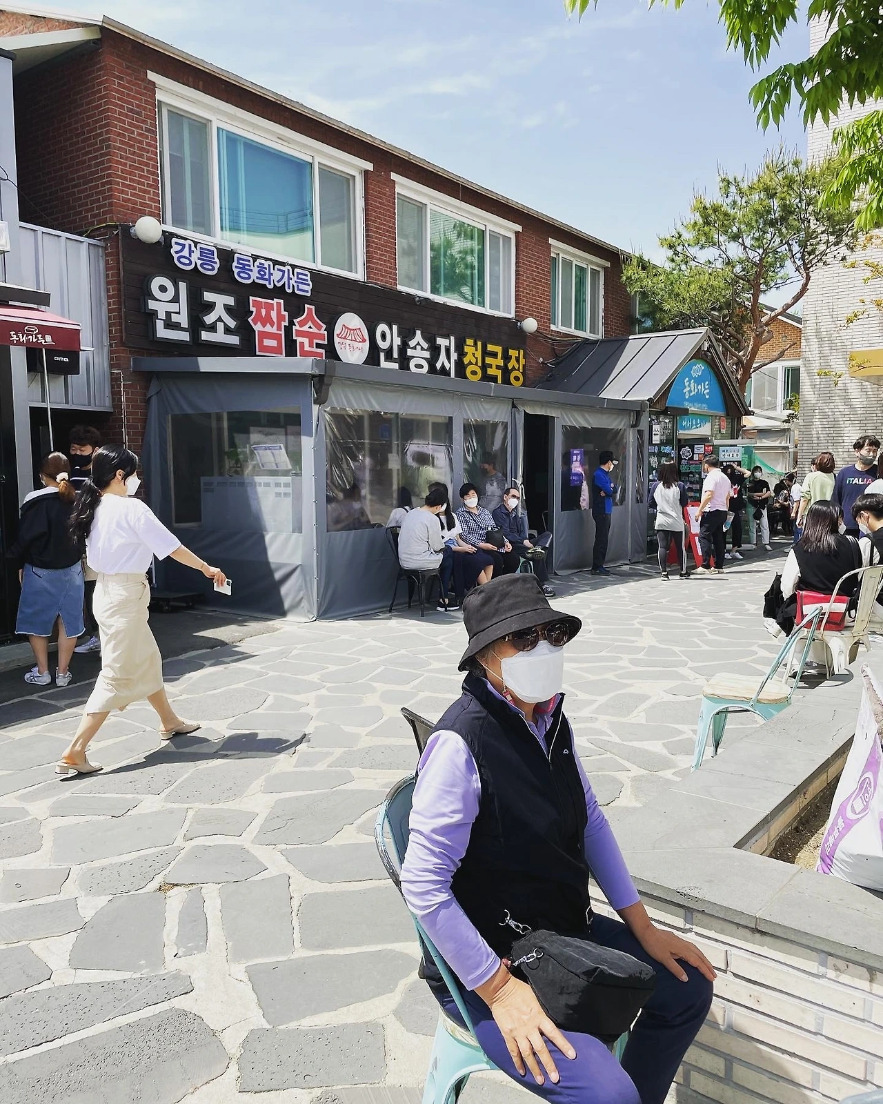 #동화가든(초당 순두부 마을 내 원조 짬순): 한 2시간 기다린다는 각오(?)와 함께 그래도 평일 연차를 내고 도전해 보셔요~ 저는 일전 이웃사촌들과 코로나 전 한번 가본지라 그래도 맘의 준비를 했답니다. 부모님 왈 “먹고 싶다”는 아니어도 “먹어보고 싶다”는 기분이 절로 들 정도였다고 하셨습니다. 운 좋게도 저희 번호표는 538이었는데 할머니가 앉아 있는 모습이 안타까웠는지 어떤 젊은이가 다가오더니 408번 번호표를 쓰라고 줘서 20분 만에 입장하는 호사를 누렸답니다. 보통 은행 가면 대기표처럼 뽑는데 함께 온 가족이 두 장 연속 뽑기도 하고 일행들이 나눠 뽑기도 하니 주변 잘 보시다 저처럼 행운을 입으시는 것도 방법 ㅎ 그리고 의자가 있긴 한데 혹시 모르니 트렁크에 낚시의자(캠핑용 의자도 좋고) 챙기도 / 기다리는 동안 허기질 수 있으니 간단 초콜릿이나 귤, 오렌지 정도 / 햇빛이 강렬할 수 있으니 모자와 선글라스 가능하면 선크림도 준비해서 바르고 기다리시면 좋답니다. 원조 짬순 한 그릇이 10,000원 반두부는 6000원, 한모 두부는 10,000원.. 양 많은 분들이면 한모 추천드리고 저랑 부모님은 반모로도 입맛 잘 다스렸어요. 백김치는 별미라는데 부모님 입맛엔 별로.. 암튼 이 집은 무조건이니 각오하시고 꼭 가보셔요