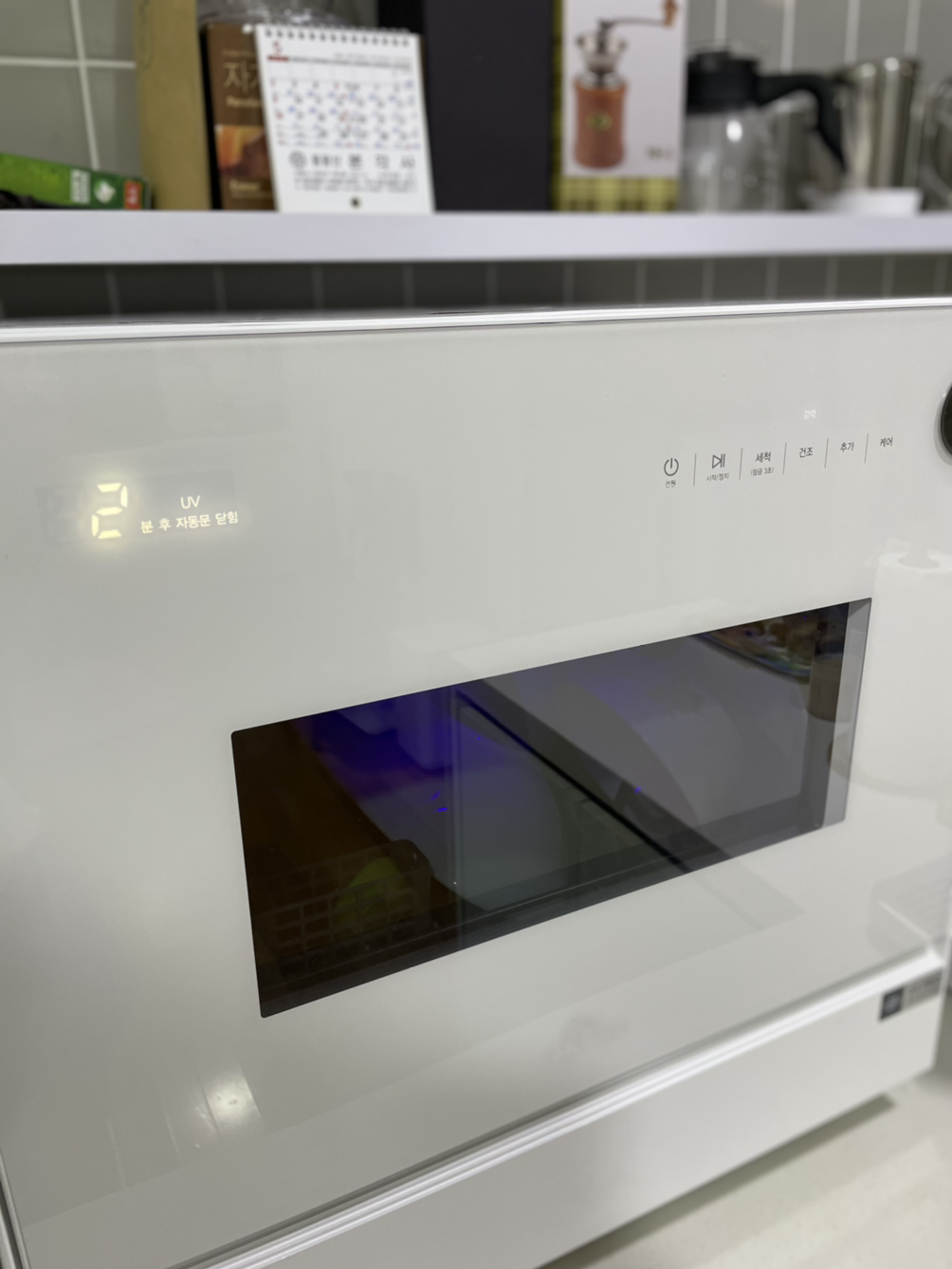 끝으로) 최근 장만한 식기세척기! 아~ 이거 없었을 때는 어찌 살았을까? 물에 담갔다 수저통에 넣어주고 / 물컵 자리에 올려놓고 / 각종 그릇과 접시 등 정해진 위치에 잘 포개 주면 토기장이가 빚은 것처럼 새 탄생해 나온다. 참, 자외선(uv)으로 살균소독까지 마쳐주면 뽀드득~ 그 자체다