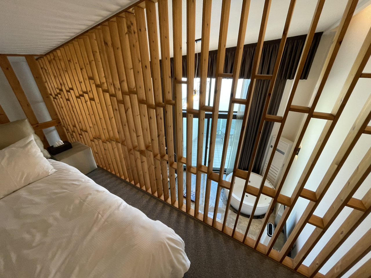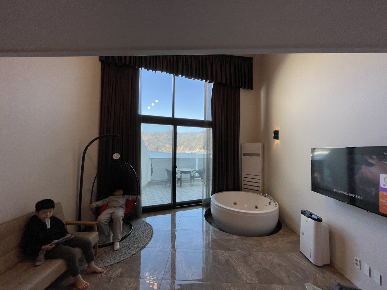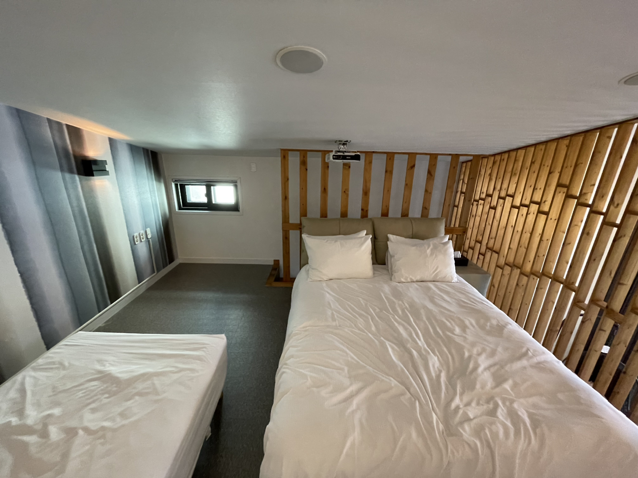 그리 크진 않지만 복층형 구조에 침대도 2개(더블, 싱글)고 이불 한 채 추가하니 우리 가족 하룻밤 묵기엔 감지덕지