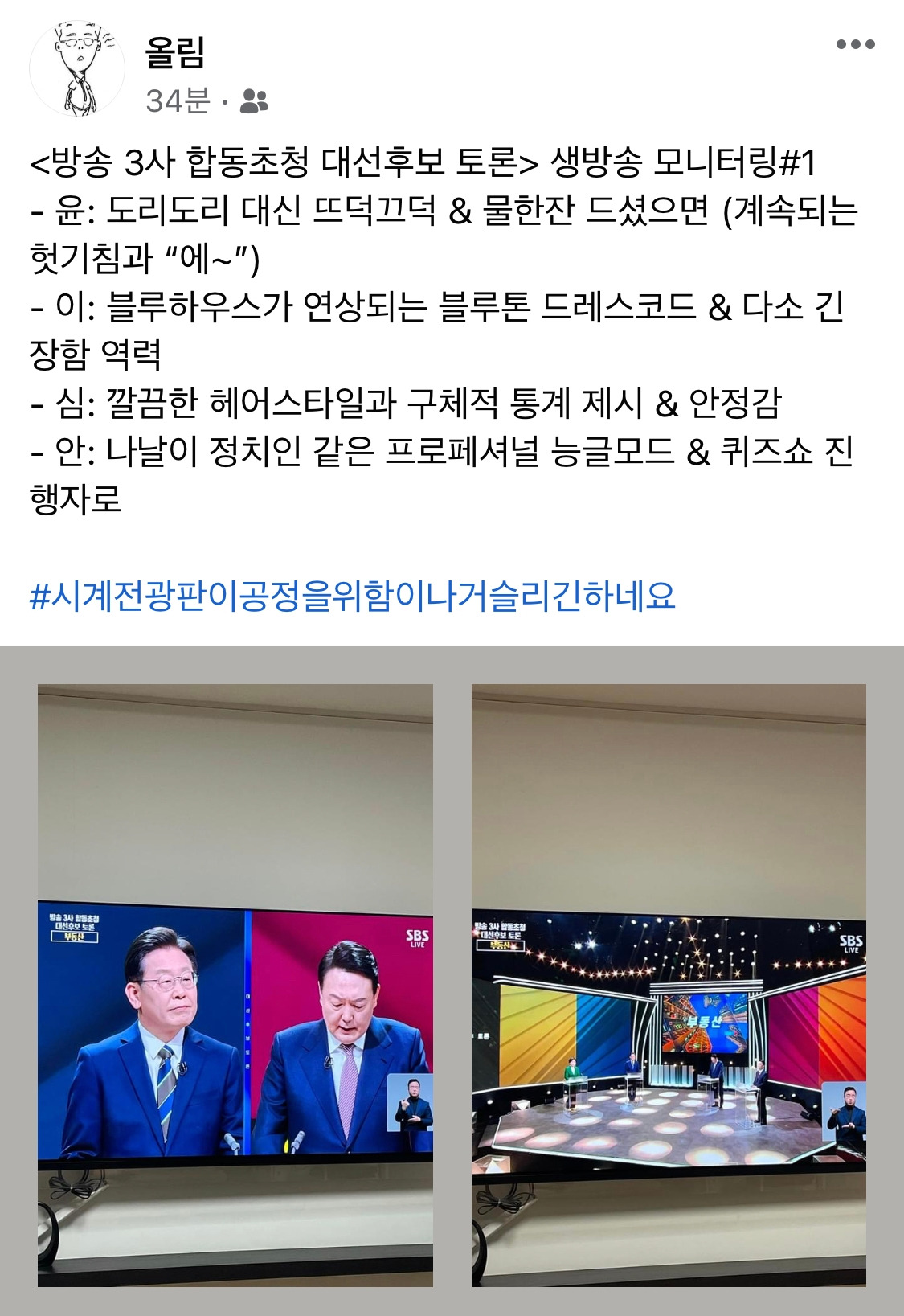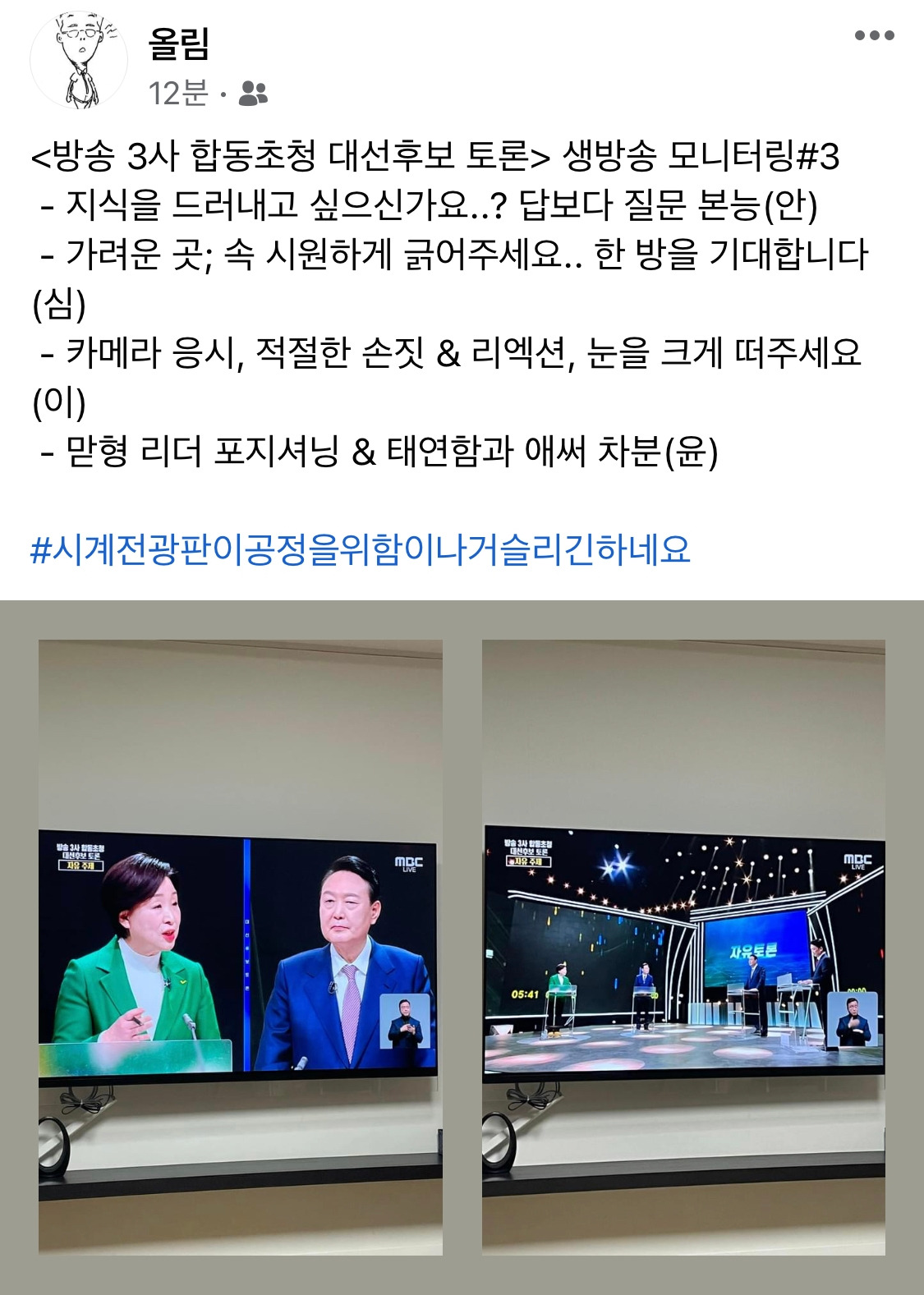 <방송 3사 합동초청 대선후보 토론> 모니터링