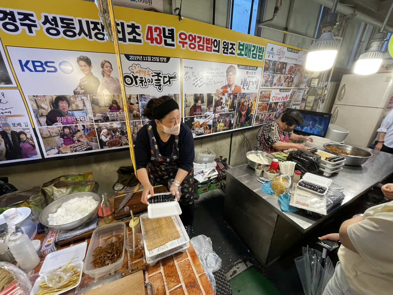 - 경주 성동시장 내 '보배김밥' 초초강추! 우엉김밥 한 종류 파는데(두 줄 5천원이 기본, 많아 보이지만 둘이라도 한 팩말고 두 팩(4줄) 사셔요~ 한팩 사고 후회막급 ㅠ) 어쩜 우엉이 이런 맛이던가, 참깨는 마법의 가루인가, 밥은 또 이렇게 고소한지, 씹는 내내 식감의 향연에 당분간 보배김밤앓이할 듯.
