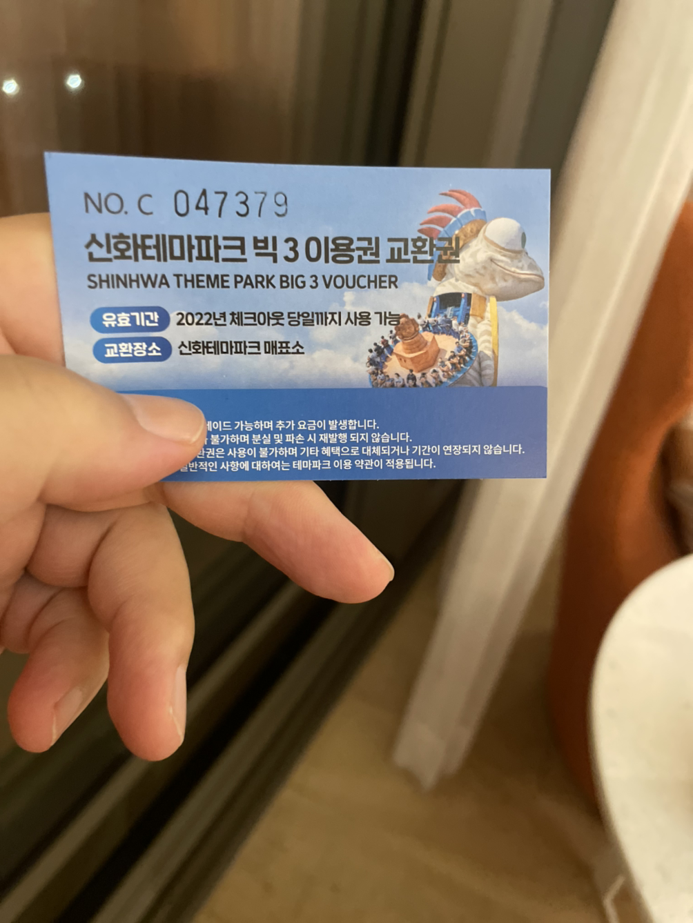 3병 제공. 신화월드 내 테마파크 빅3이용권(구매시 17,000원)은 컨시어지에 잘 말하면 10장까지도 그냥 주심(아이들 타고 또 탈 수 있음). 조식뷔페는 상당히 비싼편 (성인 5만원 수준). 그래도