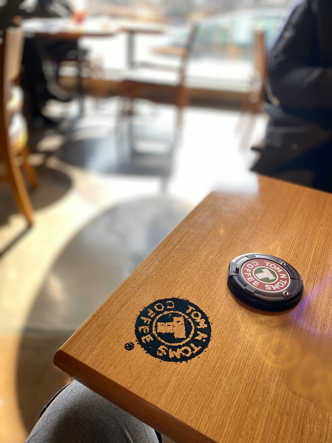 햇살을 받으며 커피 한 잔에 일광욕을 즐기는