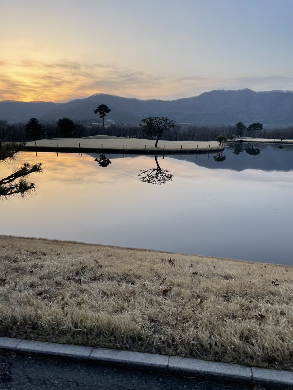 달리는 카트 안에서 순간 포착으로 찍은 사진. 경주 가면 늘 들렸던 ‘월지’의 동궁이 생각나서 누른 셔터. 이렇게 겨울이 가고 봄이 오나 봅니다… - 데칼코마니 최올림 -