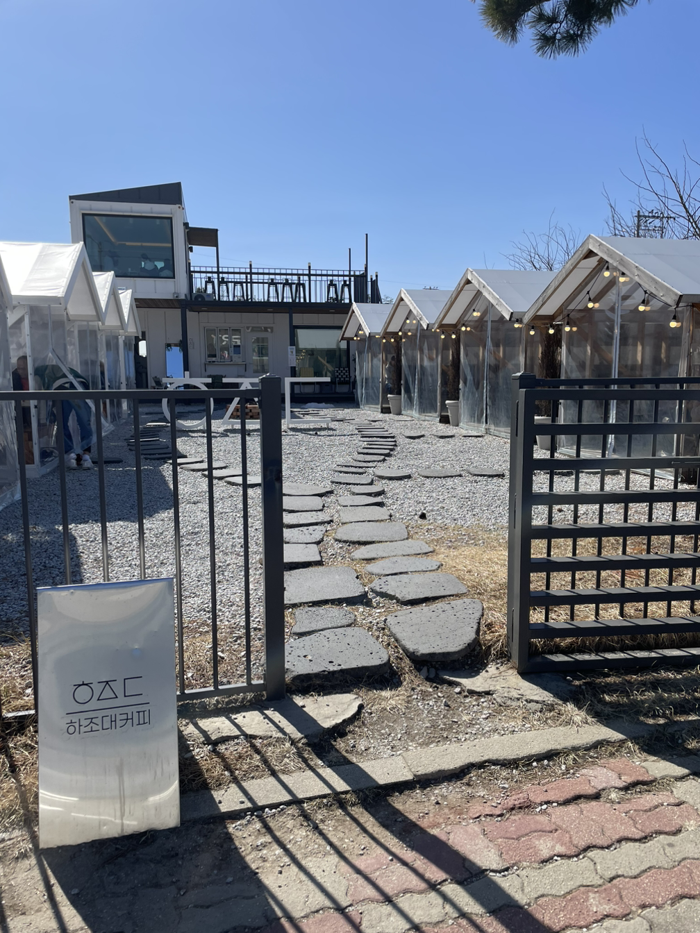 - ‘하조대커피’: 인별그램 사진 올리기 유명한 곳이라는데 정말 앉으면 창가가 액자가 되는 그 자리는 단 한 곳! 이 명당은 그냥 포기했답니다 ㅠ 다만) 외부 독립된 원두막 개념의 별실에서 가족과 함께 누워도 보고 피로도 풀며 마신 커피는 일품