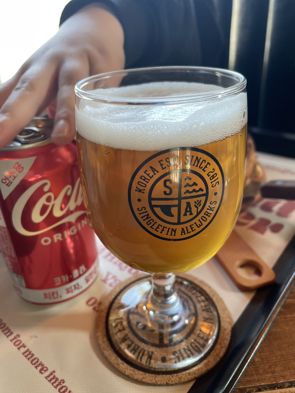 - ‘싱글핀 에일웍스’: 뭐랄까~ 시카고 피자 느낌인데 독창적이고 씬이 아닌 팬피자인데 곱배기 느낌. 그런데 맛은 정말 환상! 양양까지 와서 무슨 피자냐구요? 그 말 뱉은 사람들 다 강퇴!! 골든에일 맥주 한 모금에 피자 한덩어리 목구멍으로 넘기면 혀의 마비와 식도의 전율을 동시에 느낄수 있답니다 ^^ 2층 뷰가 좋고 가족 3~4명만 앉을 수 있는 독립공간이 있는데 여긴 점심시간 개념 없으니 오전이건 오후건 그냥 기다린다 해도 꼭 들르셔요
