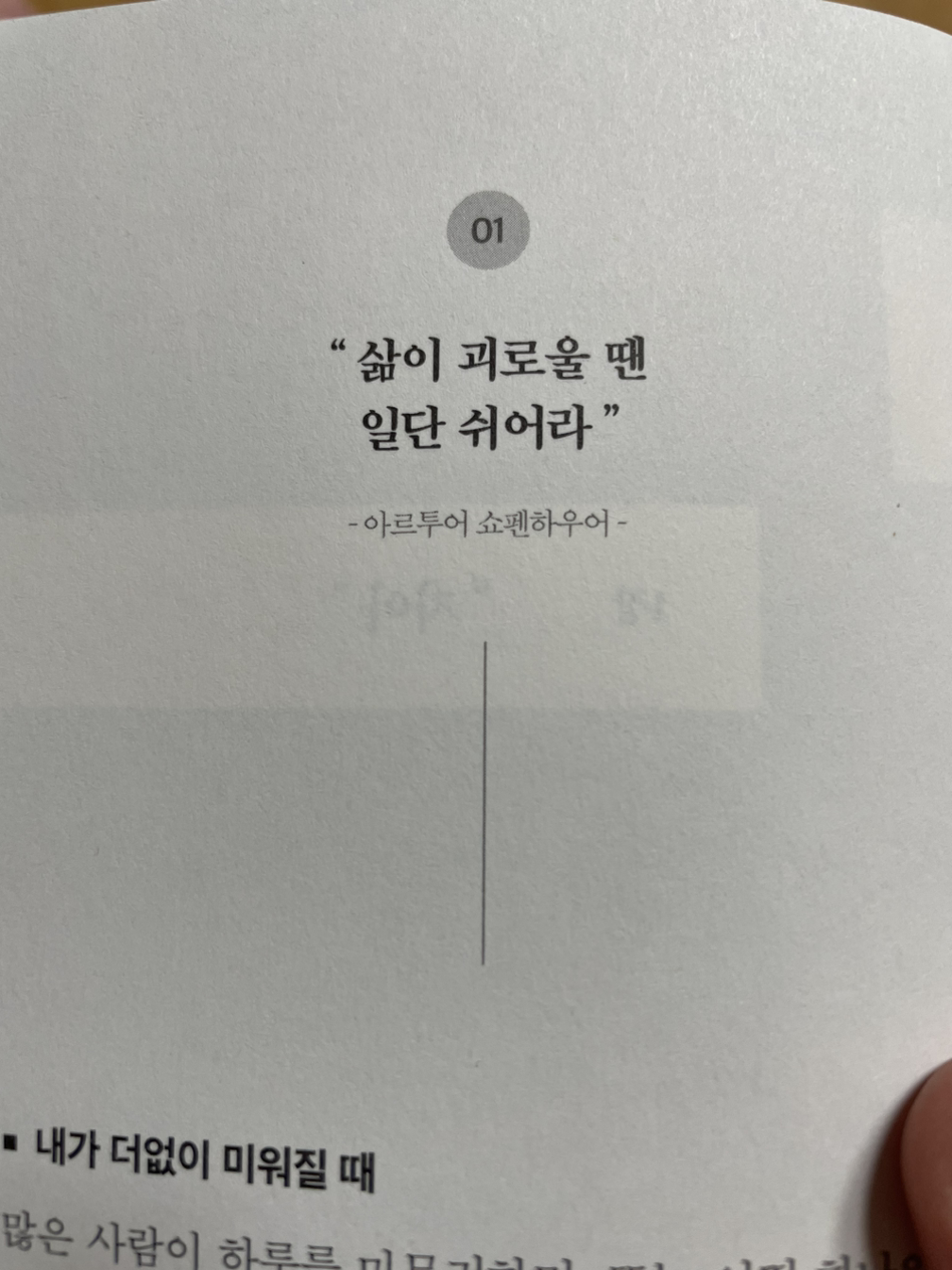 당연히 쉬고 싶죠! take a break를 강렬히 원하죠. 하지만 저는 평소보다 더 일찍 경영회의 참석을 위해 출근해야하고, 괴로워도 티 안내고 실원들을 이끌어야 하는 유일한 조직장이기에 그럴 수가 없답니다. 유일한 방법이 라구요? 맞습니까? 적어도 쇼펜하우어 형님께서 살던 그 시절엔 가능했을까요..라고 짧게 반추하며 첫 챕터에 토는 이 정도로 달께요…. (to be continued) by 최올림