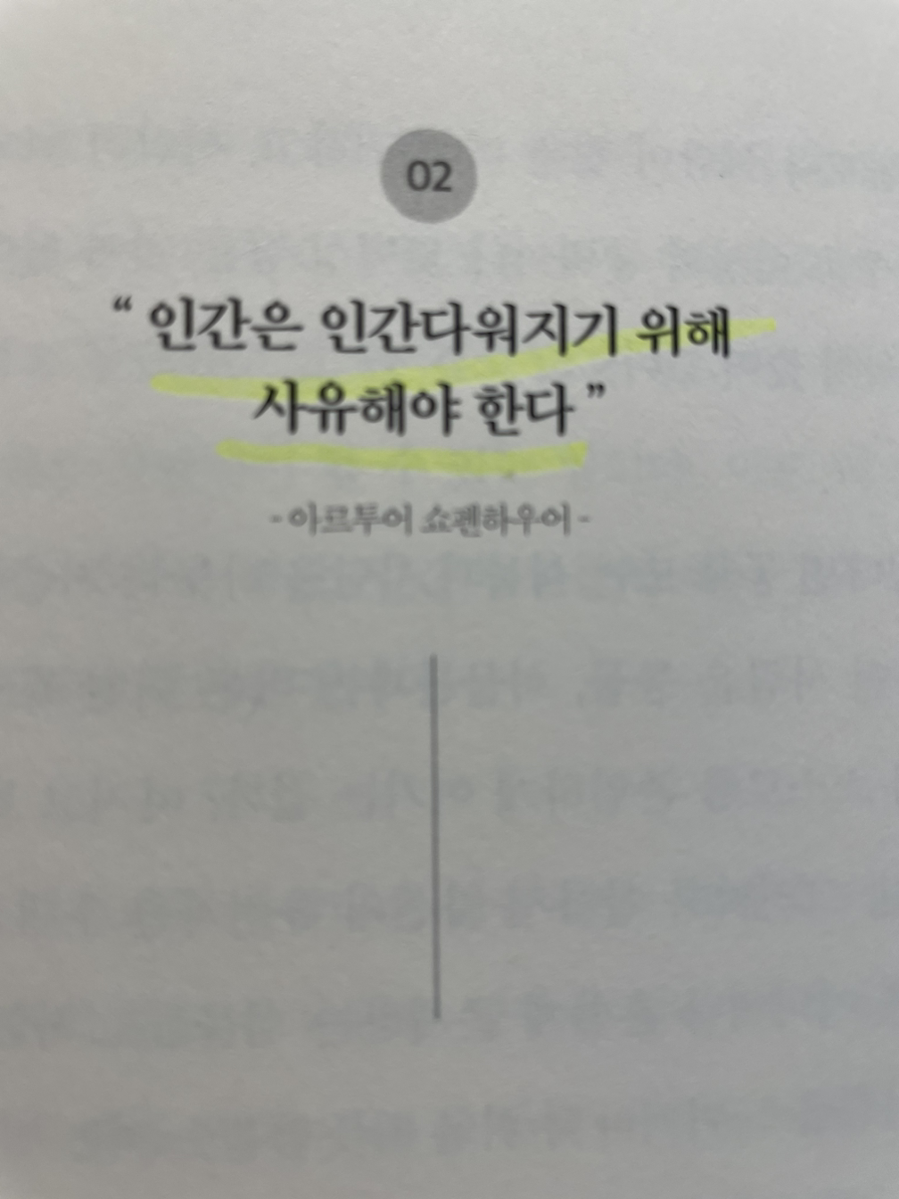 우리 하우어 형님께선 ’사유를 통해 사람은 사람다워지고 사유를 삶의 본질로 삼아야만 사람은 끝까지 사람으로 있을 수 있다‘라고 정의하셨습니다.