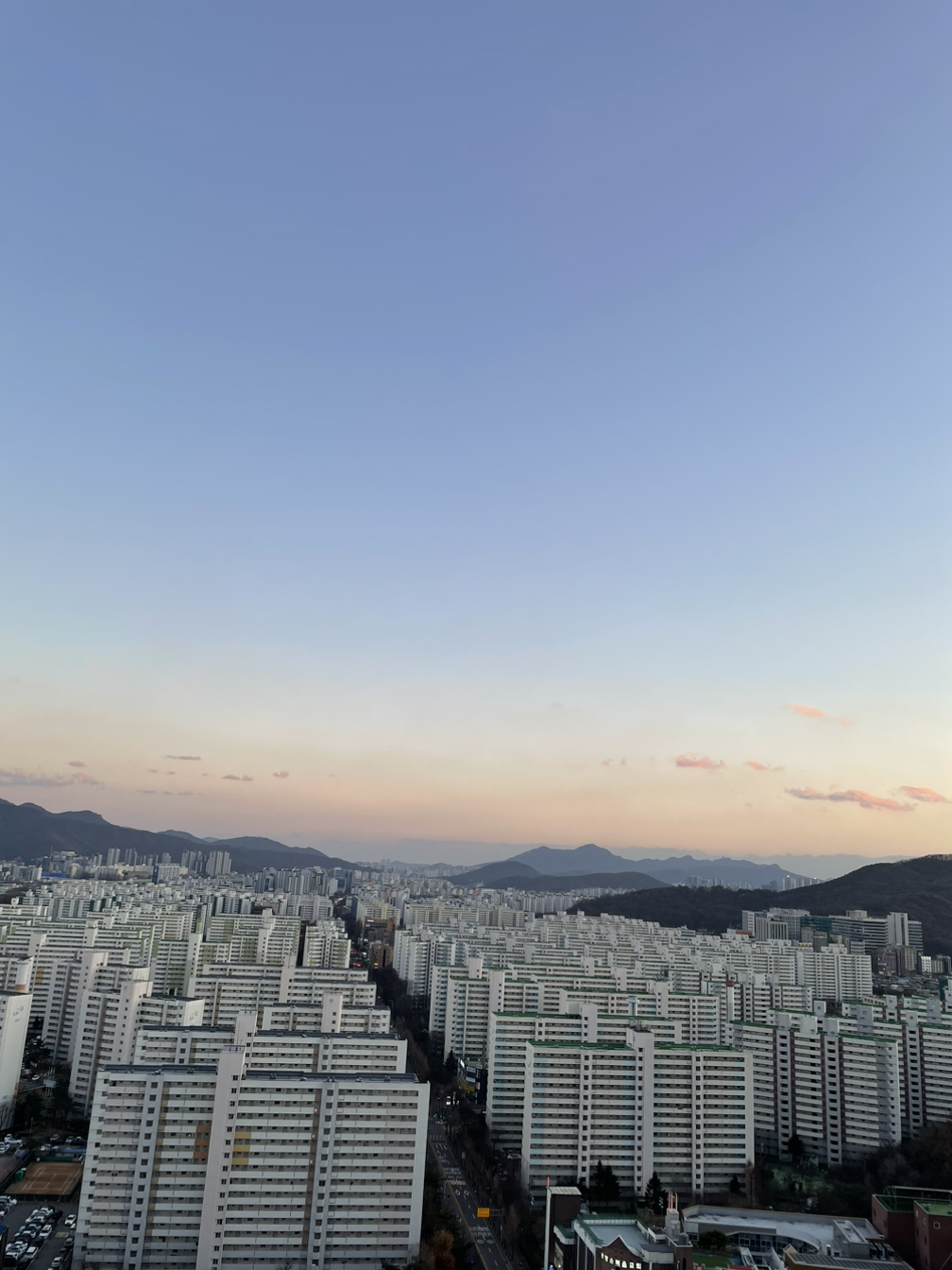 바라본 아파트들 위로 보이는 바다같은 산들