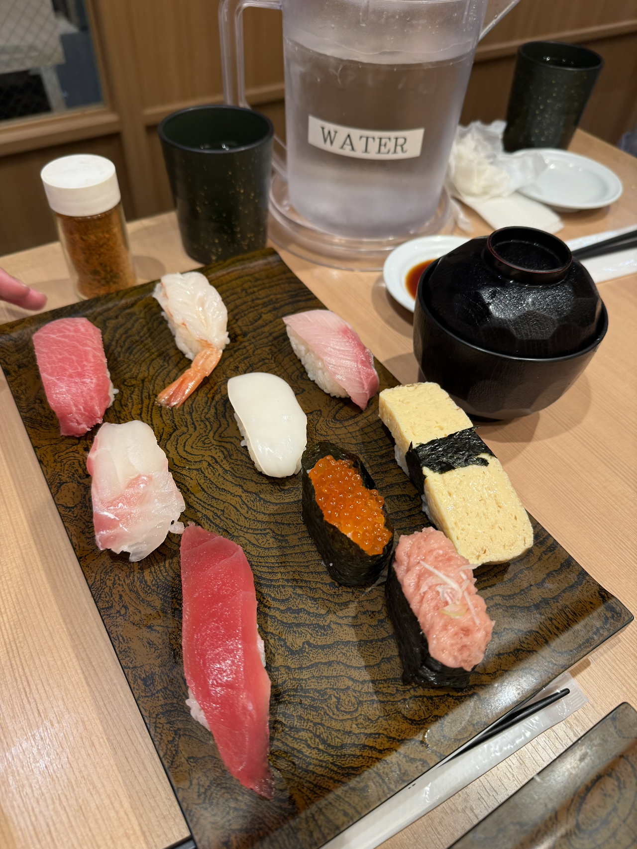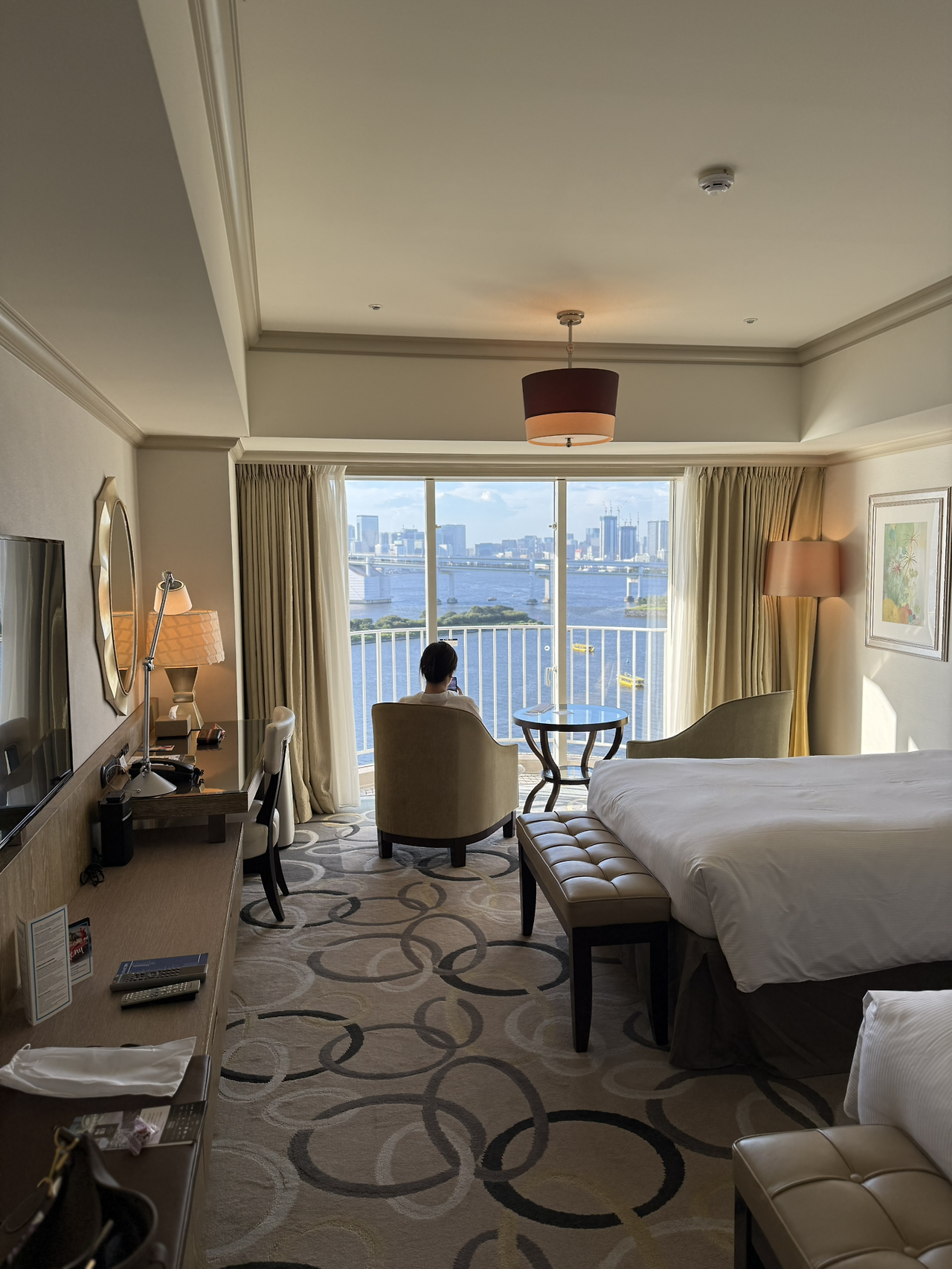 룸 안 소파에 앉아 창밖 레인보우 브릿지를 바라보는 것만으로도 충분히 행복했고, 인근 아쿠아시티몰, 다이버시티몰에서 먹은 덮밥, 라멘, 돈가스, 그리고 시부야와 긴자에서의 초밥까지 모두 만족스러웠습니다.