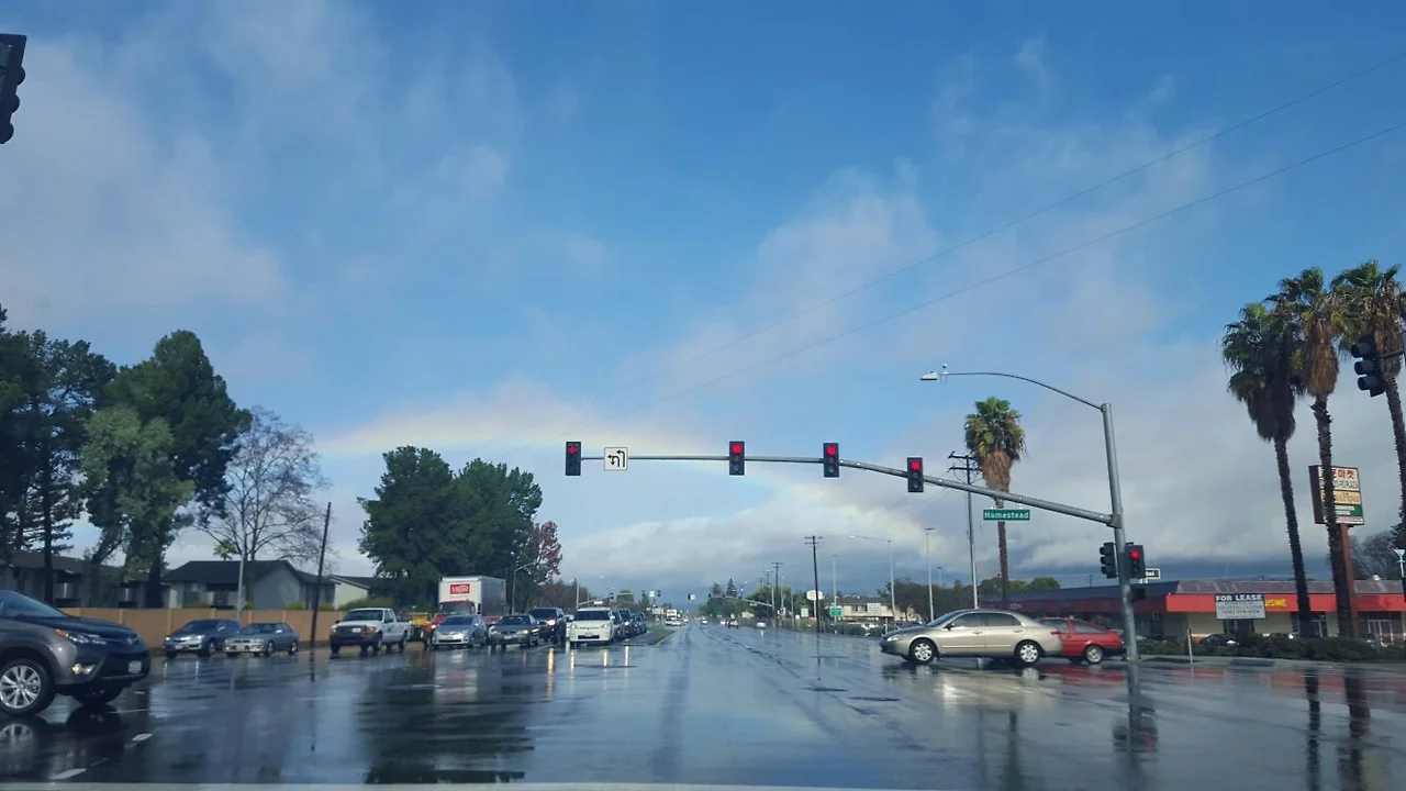 비는 오고. 하늘은 파랗고. 무지개는 활짝 피고.. 사람들은 어디론가 가고...