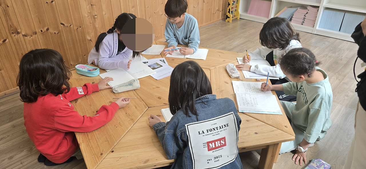 -4학년 : 아이들이 자료실과 교실을 왔다 갔다 돌아다니며 조사하고 글쓰기를 하는데 선생님의 지도가 없이도 자기들끼리 알아서 척척하는 주도성은 이미 몸에 밴 듯했다. 술술 써 내려가는 지역에 대한 조사보고서는 아이들이 살아있는 지역 연계 학습을 하는구나 싶었다.