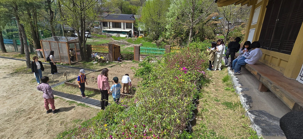 -3학넌:모여서 선생님이 들려주는 책 이야기를 듣고, 관련 단어를 국어사전을 찾는 활동이 처음에 전개되었다. 조사한 낱말로 예시 문장 만들기도 무척 유익한 활동인데, 직접 화단에 가서 조사한 식물을 보고, 그리고 때론 맛보기도 한다. 화단 가꾸기도 직접 하는 체험활동은 생생한 생명존중 활동이었다. 자유로우나 질서 있는 교실이었다.