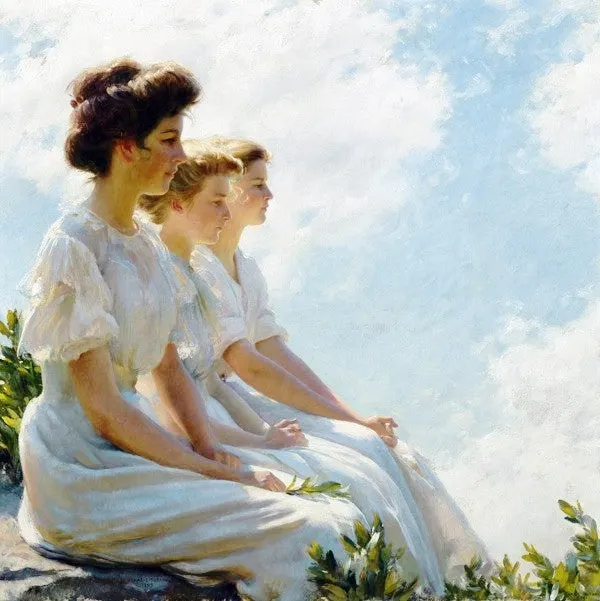 저자는 챕터의 논지에 맞게 명화를 한 편씩 소개한다. 교사의 자존감에 관련한 명화로 찰스 커트니 커란의 ‘언덕 위에서’ 작품을 꼽았다. 20세기 초 미국에서는 많은 여성들이 수동적이고 장식적인 존재로 살아가는데 반해 이 그림의 여인들은 주체적이고 사유하며 응시하는 표현이 돋보인다. 교사도 이와 다르지 않다고 설명한다.