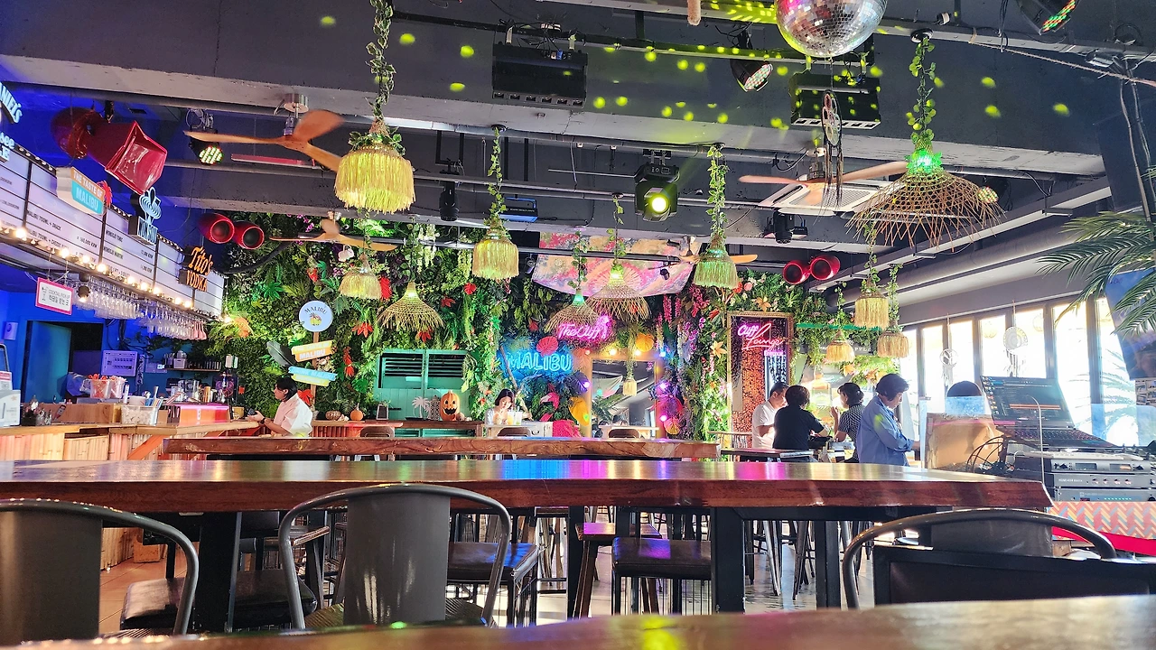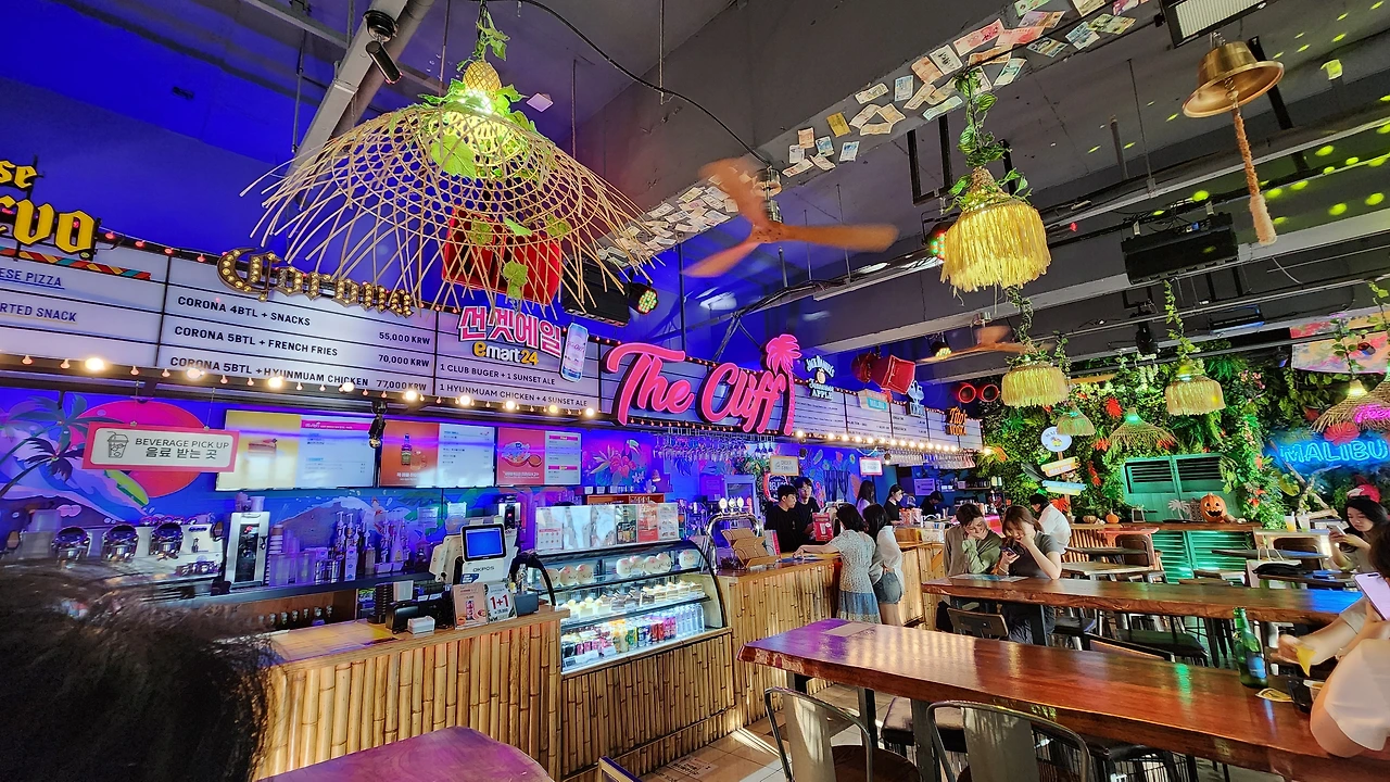 해질녘 이 곳에 앉아서 맥주 한잔과 재미난 현무암 치킨을 즐기는 것은 또 다른 즐거움이었다.해수욕을 마치고 들어오는 사람들,일몰을 보고 싶지만 햇빛이 너무 뜨거워 실내로 들어오는 사람들,과녁맞추기 하며 오후를 즐기는 사람들 다양한 사람들도 즐기고 있다.아이들 보고 싶어 미국이 생각날떄 이 곳에 오면 좀 위안이 될라나..