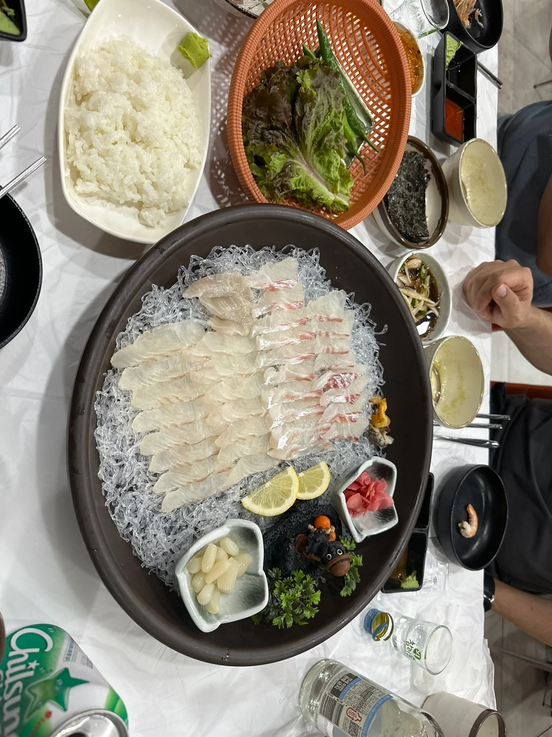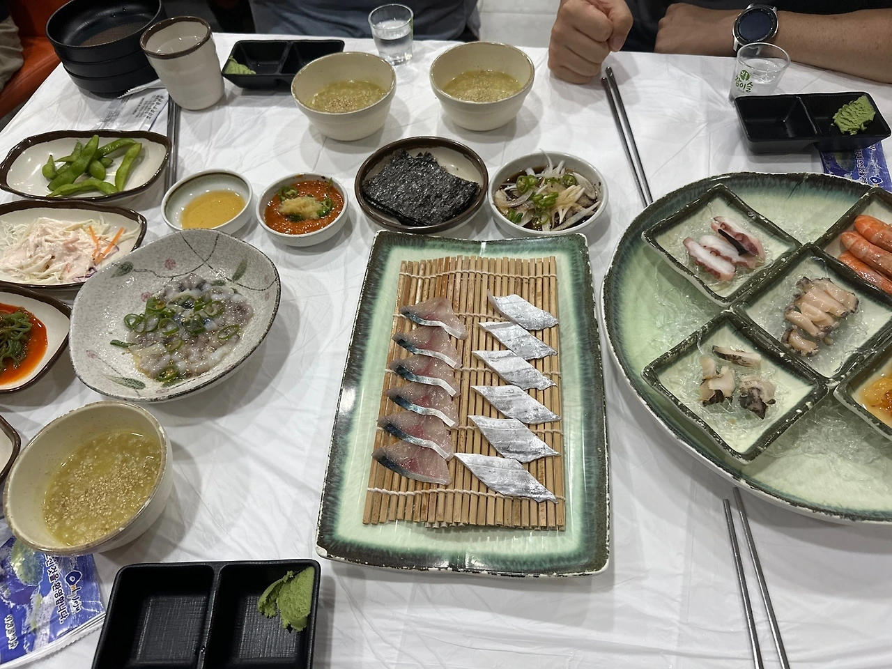 원래는 백록집에 가려고 했다.고등회는 한 번 먹고 제주도를 떠나야지..하는 마음에 말이다.예약을 받지 않는 백록집은 한시간 이상을 기다려야 했다.2안으로 고른 곳은 뜰채 횟집.나쁘지 않았다.갈치회 고등회를 맛보고 맛난 회로 여행의 저녁을 마무리했다.함덕의 밤바다는 아름다웠고 파도는 시원했으며 밤 거리는 즐거웠다.