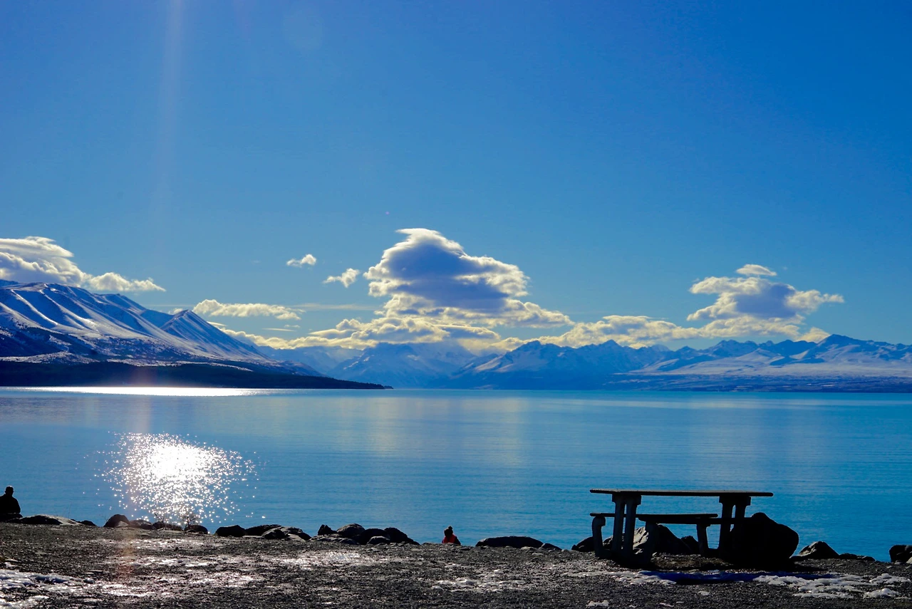 하늘은 푸른 쪽빛이었다. 멀리 마운틴 쿡(Mt. Cook)의 만년설인 빙하수가 흘러 내려 데카포 호수를 옥빛으로 반짝거리게 하였다.