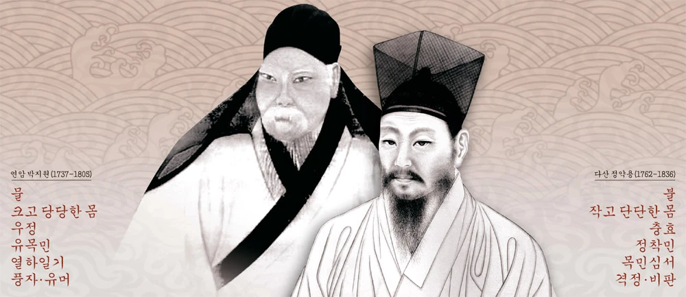 무릇 글을 읽고 글을 쓰는 사람이라면, 다산과 연암을 몰라서는 안 될 것이다. 조선 시대 최고의 문장가인 두 사람은 성격도 다르고, 스타일도 다르다. 둘 다 실학사상을 주장했지만, 둘의 기풍은 달라 같은 한양땅에 살면서 단 한 번도 서로 얼굴을 마주치지 않았다. 연암은 기성세대를 풍자하며 비판하였지만, 다산은 기성세대 속에 들어가 그들을 변혁시켜 보려고 힘을 다했다. 요즘 식으로 말하면 연암은 문학가 쪽에 가깝고, 다산은 학자 쪽에 가깝다고 할 수 있다.