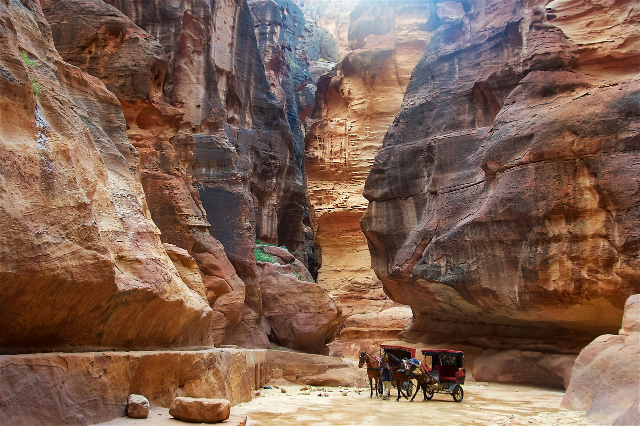 이 아름다운 자연을 말과 마차로 휙 지나치는 것이 너무 아까워 우리는 걷기로 하였다. 우리의 눈 앞에 펼쳐지는 협곡(As-Siq)은 말 그대로, 영화의 한 장면이었다. 뱀처럼 구불거리는 길을 따라가면서 나는 카메라를 내려놓을 수 없었다. 계속하여 찰칵찰칵 사진을 찍다 보니 어느새 ‘알 카즈네’에 도착하였다.