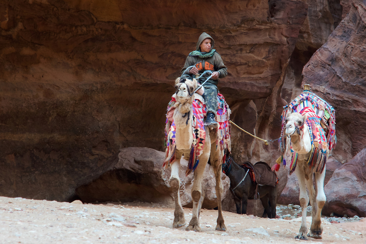 소식에 의하면, 오늘 오후에 다시 비가 온다고 하니 아침 일찍 빨리 구경하고 나오잔다. 아침을 먹는 둥 마는 둥 하고 호텔 앞에 있는 페트라 입구로 향하였다. 우리 일행이 입구에 들어서자 저 멀리 말과 마차를 끌고 아랍인들이 달려왔다. 말 타는 데는 5달러, 마차를 타는 데는 40달러 하면서 호객행위를 하는데 이곳이 관광지인 것이 느껴졌다.