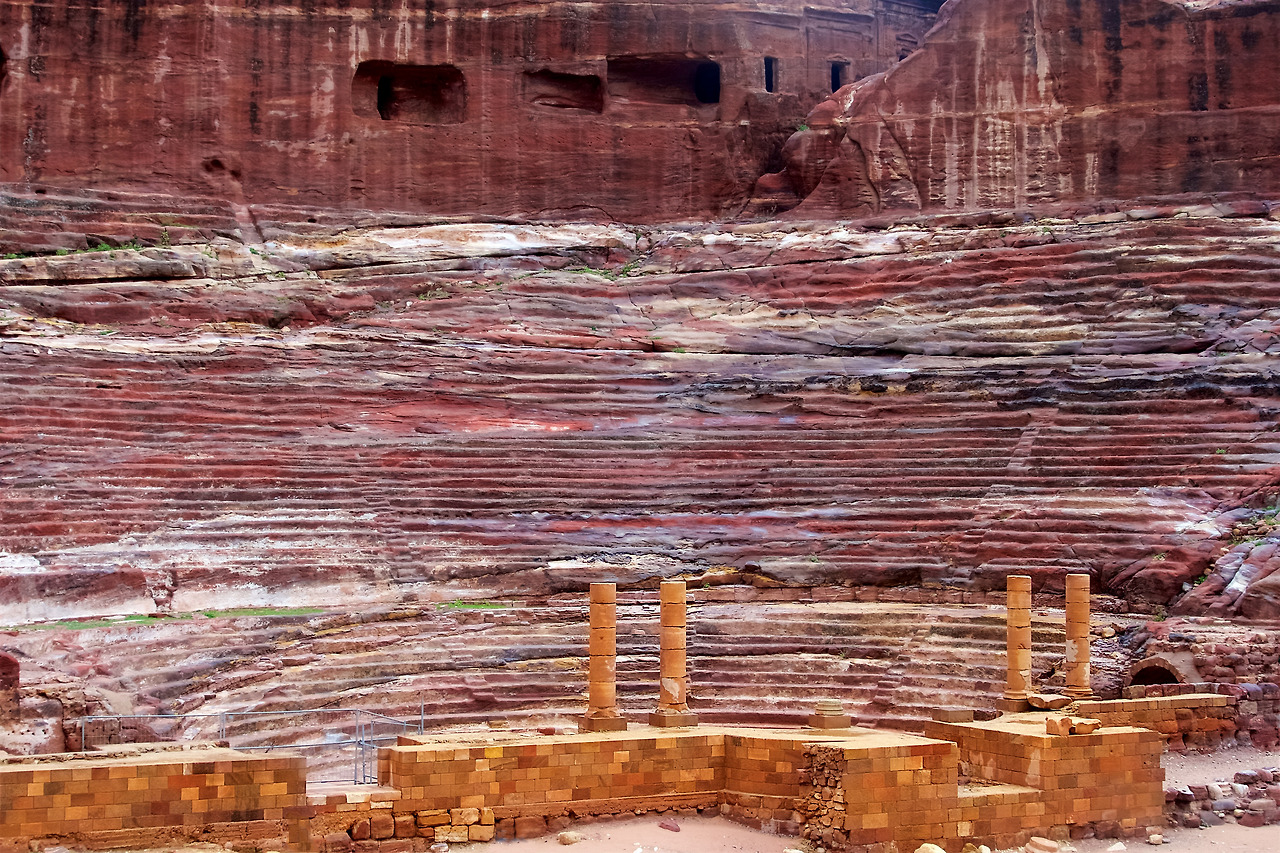다시 이슬비가 부슬부슬 내리기 시작하였다. 모두 발을 재촉하는데 그래도 볼 건 봐야겠지 하는 마음으로 더 둘러 보았다. 알 카즈네에서 조금 더 걸어가면, 로마 시대 때 만든 원형 극장이 눈에 띈다. 바위를 하나하나 깎아서 만든 계단이 33층이고, 좌석은 7,000명을 수용할 수 있는 대규모 극장이다. 이곳에서는 2008년 파바로티 추모 공연이 있었다.