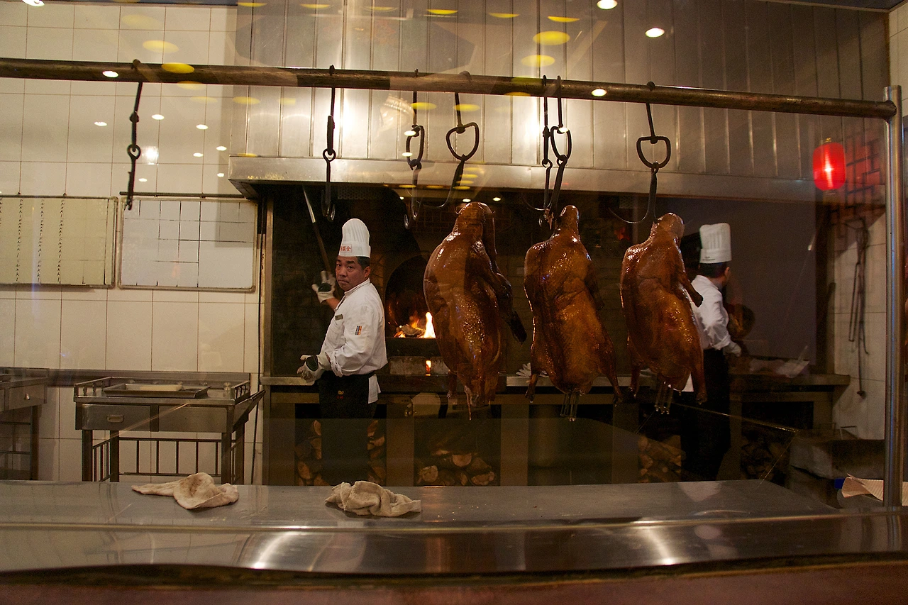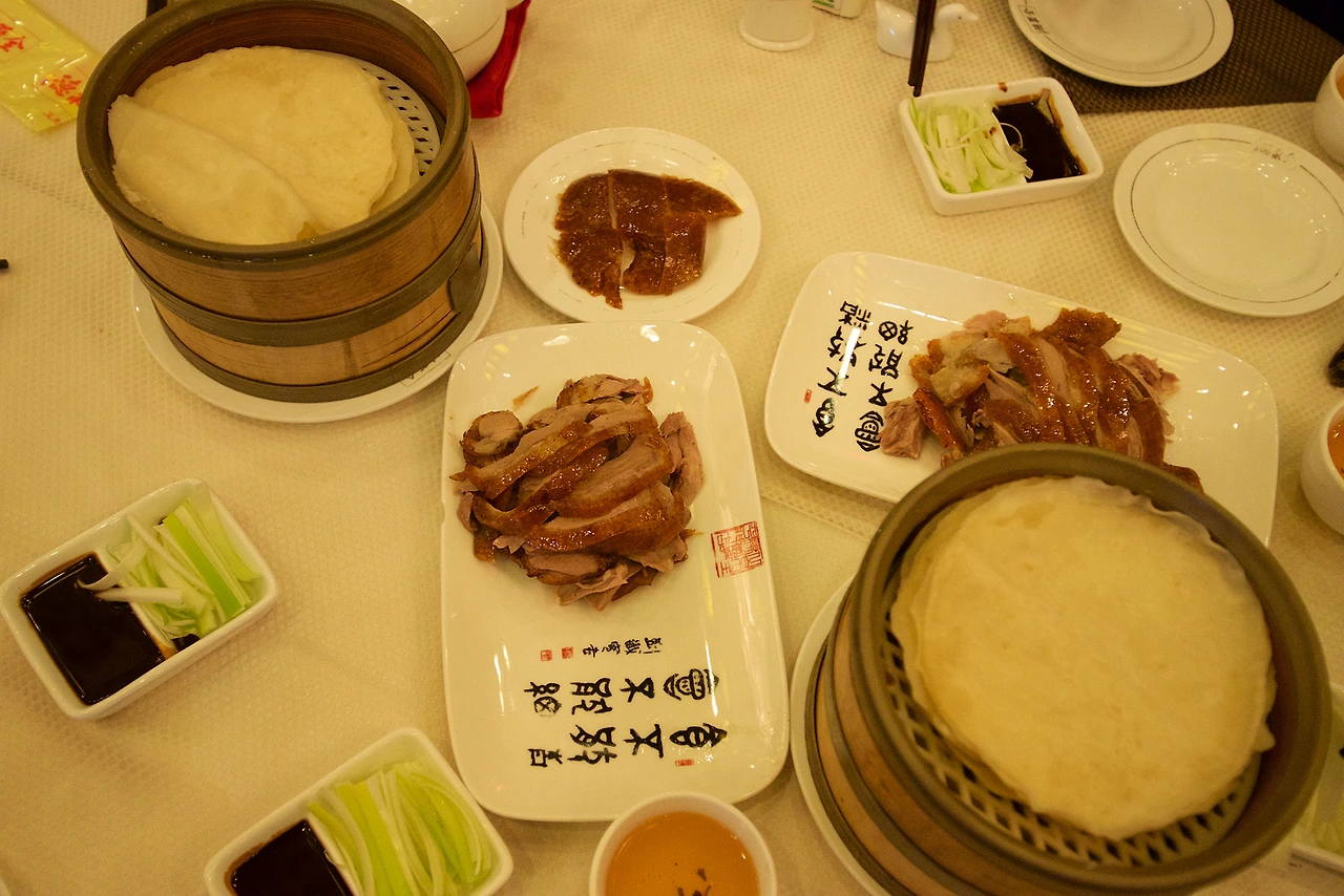 비록 우리나라의 오리요리처럼 기름기를 쏙 빼지는 않았지만, 밀전병 같은 만두피에 양파 채 썬 것과 소스에 오리고기를 넣어서 쌈 싸먹는 요리였다.