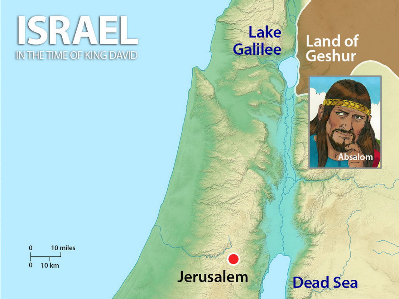 암논의 라이벌은 압살롬이다. 압살롬은 그술(Geshur) 왕의 딸인 마아가의 아들로서 든든한 배경을 갖춘 인물이다. 그는 멋진 사내대장부였다. "온 이스라엘 가운데에서 압살롬같이 아름다움으로 크게 칭찬받는 자가 없었으니 그는 발바닥부터 정수리까지 흠이 없음이라”(삼하14:25) 압살롬은 잘 생긴 것뿐만 아니라 지혜도 있었고 결단력과 인내심까지 갖춘 사내였다.