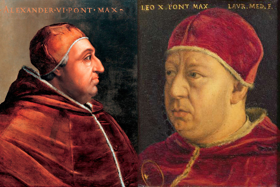 보르자 가문에 알렉산데르 6세가 있다면 메디치 가문에는 레오 10세(Leo PP. X, 재위 기간 1513~1521)가 있다. 그는 “신께서 하사하신 교황권을 만끽하라”는 말과 함께 교황의 임무를 시작했다. 그는 '위대한 로렌초' (Lorenzo der Prächtige)의 아들로서 불과 13살에 추기경이 되었다. 그는 영혼 구원과 관련해서는 눈곱만큼의 책임의식도 가지지 않았다. 돈을 물 쓰듯 쓰던 그는 마침내 교황청 금고를 바닥내고 말았다. 예술과 건축을 좋아했던 그는 바티칸 성당 건축을 핑계로 면죄부를 팔기 시작하였다. 면죄부 판매는 바티칸 성당을 짓는 것 뿐만 아니라 자기의 쾌락과 탐욕을 채우기 위한 수단이었다.