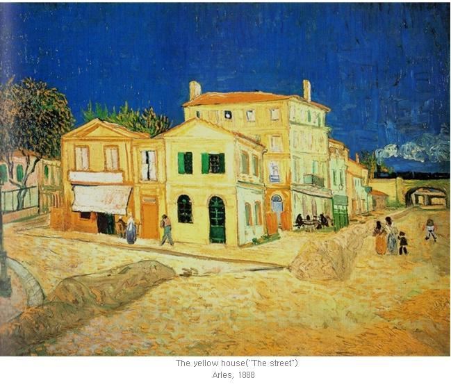 1888년 10월 23일 두 사람은 공동생활을 시작했다. 프랑스 남부 시골 아를(Arles)에 고흐가 사는 노란 집이었다. 1층은 작업실이었고 2층에 있는 방 두 개를 각자 사용했다. 처음 두 사람은 마음을 맞추어 한 가지 주제를 가지고 그림을 그렸다. 레스토랑 여주인 지누, 아를의 여인들, 도개교 아래 빨래하는 여인들, 아를의 포도원 등 아를의 모습을 함께 그렸다. 그러나 행복은 오래가지 않았다.