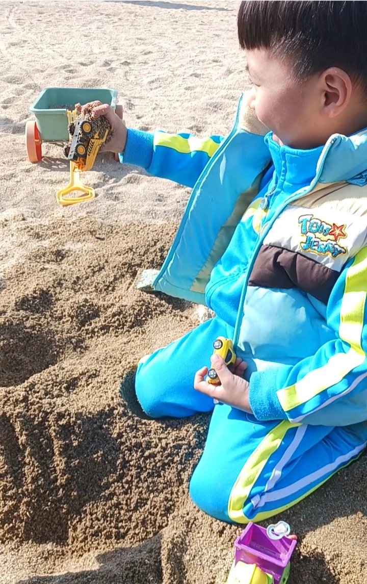 아~ 잊을 수 없는 한 아이가 있었어. 2021년 12월 생이어서 우리 나이로 3살이지만 2살처럼 보이는 한 아이였어. 그 아이는 모래놀이에는 관심이 없고 오직 우리가 먹고 있는 꼬깔콘에만 관심이 있었어. 아빠가 말리는 데도 우리에게 와서는 꼬깔콘을 줄 때까지 안 가는 거야. 어떻게 안 줄 수가 있겠어. 봉지째 안겨 주고 싶을 정도로 귀여운데 말이야. 아빠의 허락을 받고 꼬깔콘을 입에 넣어 줬어. 아이는 꼬깔콘 하나를 입에 넣고 아빠 쪽으로 갔다가 입에 있는 꼬깔콘이 사라지면 또 와서는 하나를 먹고 가는 거야. 몇 번을 왔다 갔다 했는지 몰라. 이런 아이들의 모습은 정말 사랑스러워. 꼬깔콘을 향한 그 진지한 눈빛이 아직도 어른거린다.