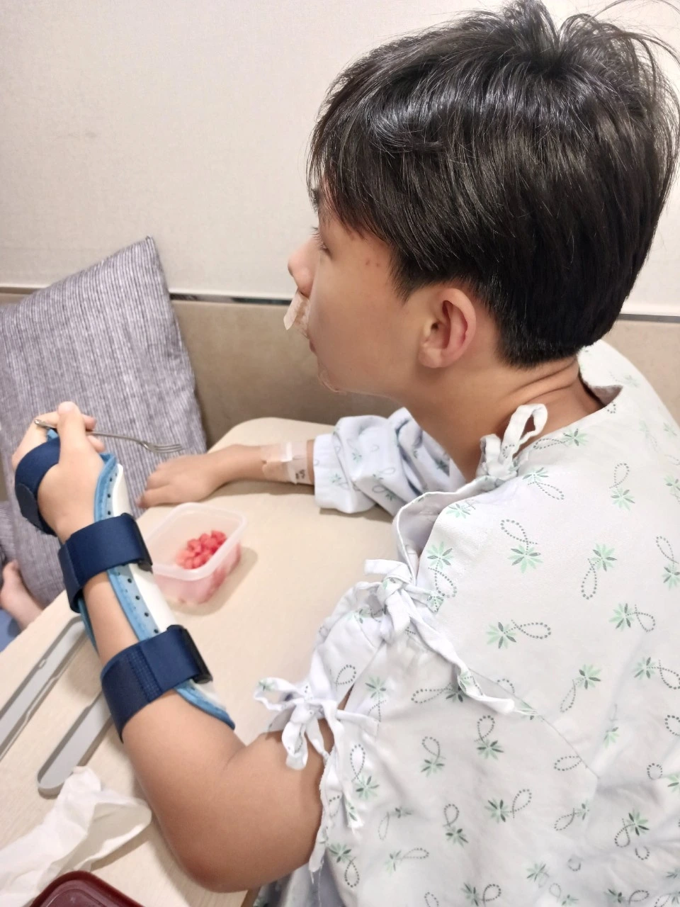 입과 치아를 다치니 먹이는 게 일이었어. 빨대도 빨지 못했고, 입 안으로 음식을 넣는 것도 힘들어서 어떻게 밥을 먹이나 고민했지. 집에 가서 숟가락을 종류별로 가져온 뒤 하나씩 테스트를 해 봤어. 쇠숟가락, 나무숟가락, 끝이 하트 모양인 찻숟가락, 끝이 둥근 세모 모양인 찻숟가락, 손잡이가 긴 숟가락, 손잡이가 짧은 숟가락 등. 테스트해 본 결과 손잡이가 길고 끝이 둥근 세모모양인 찻숟가락이 그나마 밥을 먹이기에 나았어.