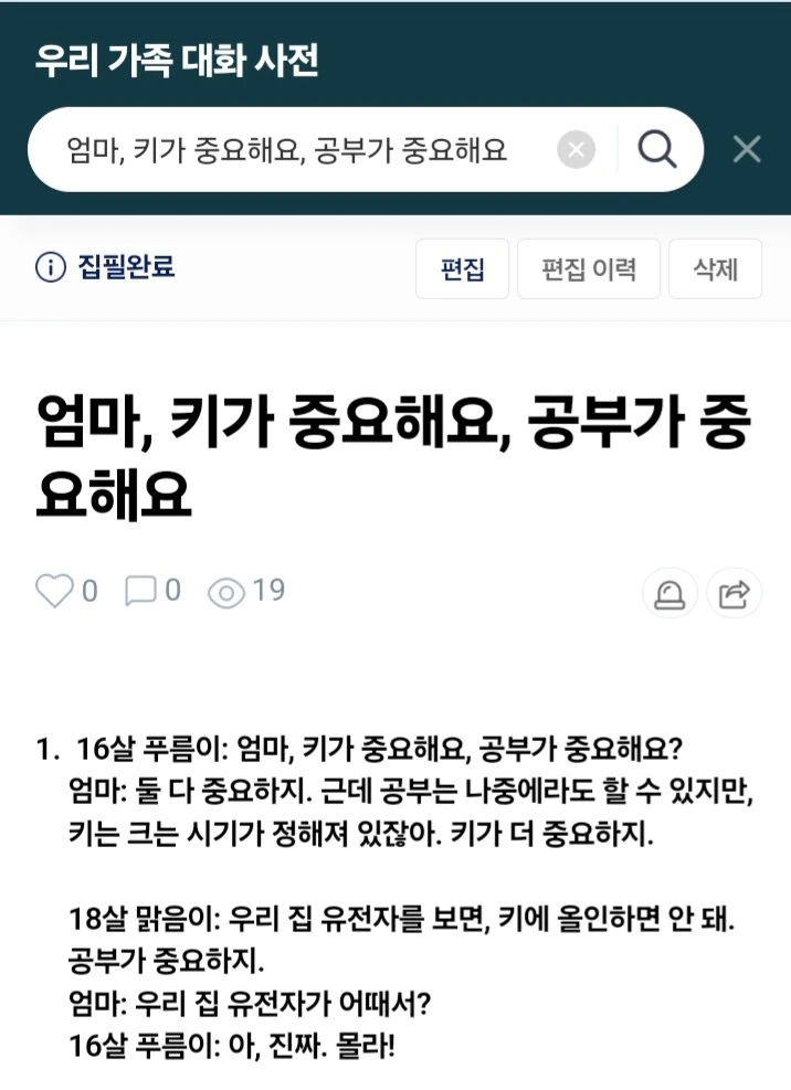 "우리 집 유전자로는 키에 올인하면 안 돼. 키보다 공부가 중요하지."