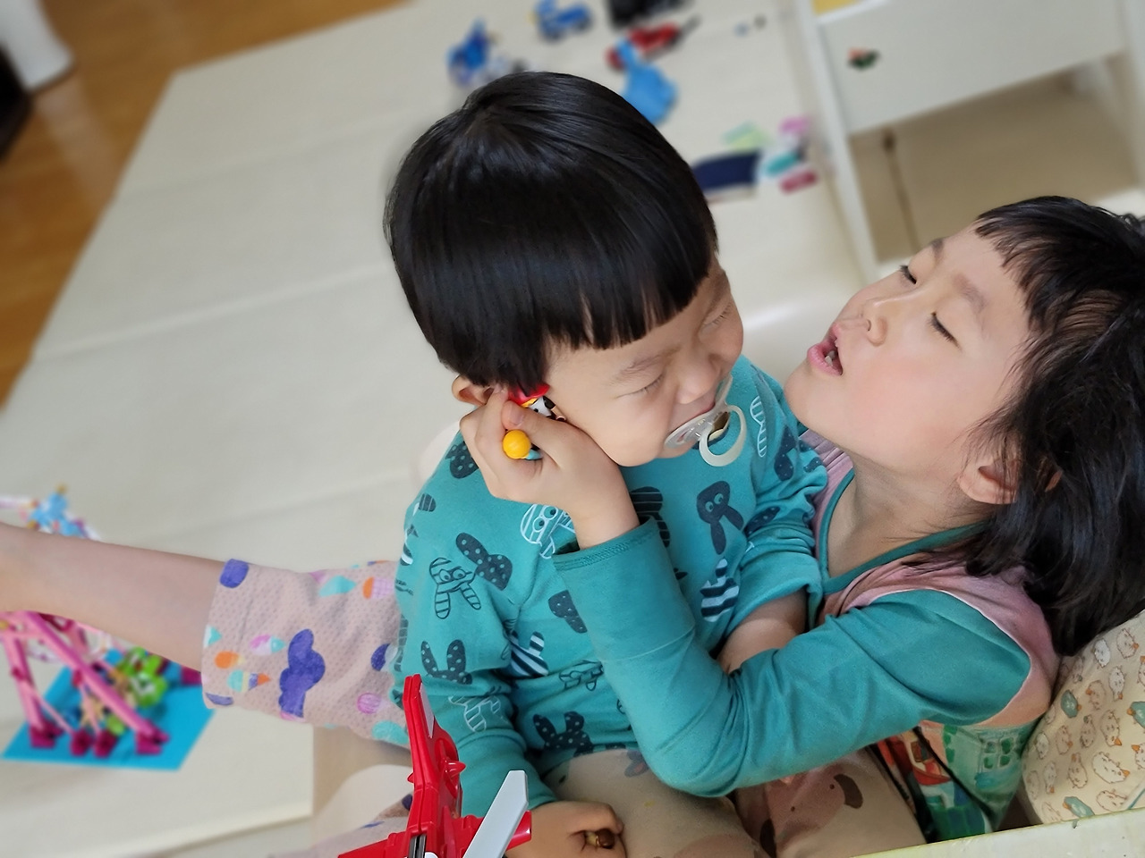 엄마가 세상에서 나를 가장 사랑한다고 당당히 이야기 하는 첫째와, 아빠가 우주인 꼬물이 둘째의 바라기.