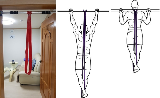 ① 내가 현재 하고 있는 턱걸이는 풀업밴드를 이용한 턱걸이(풀업)이다. 수개월 전 몇 십 년 만에 턱걸이를 시도하면서 아마 적어도 1~2개 정도는 할 수 있을 거라 내심 기대했다. 오랜 팔굽혀펴기 운동으로 팔에 근력이 꽤 붙었기 때문에 더욱 기대가 컸다. 그러나 웬걸 철봉에 매달린 상태에서 전혀 움직일 수가 없었다. 팔힘을 전혀 쓸 수 없을 정도로 매달린 상태에서 꼼짝달싹하지 않았다. 약간의 충격 끝에 정신을 가다듬고 풀업 요령과 방법에 대해 조사를 시작했다. 자칭 타칭 전문가로 자처하는 사람들의 다양한 방법들을 대략 2주간의 시간을 투자하여 차근차근 전부 시도해 봤다. 그중에서, 턱걸이 단 한 개도 할 수 없는 내가, 유일하게 효과를 본 것이 바로 풀업밴드를 이용하는 것이었다. 턱걸이 0개에서 1개를 가능할 수 있게 하는 아래의 요령은 지극히 개인적인 경험에 따른 것이다.