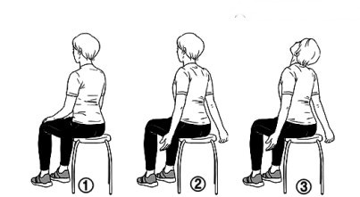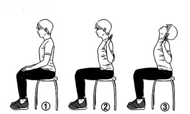 1. 의자에 앉은 자세 또는 선 자세에서 허리를 곧게 편다.