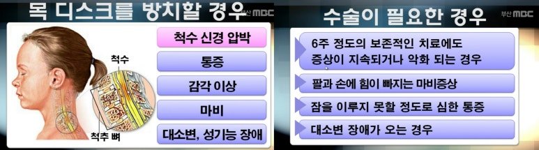 2. 반드시 수술을 해야할 경우는, 크게 첫째 통증때문에 일상생활이 힘들 경우, 둘째 통증때문에 생업이나 하는 일에 큰 지장이 있을 경우, 셋쩨 사지 마비가 오는 경우. 넷째 대소변의 배변장애 또는 성기능의 장애가 오는 경우다.