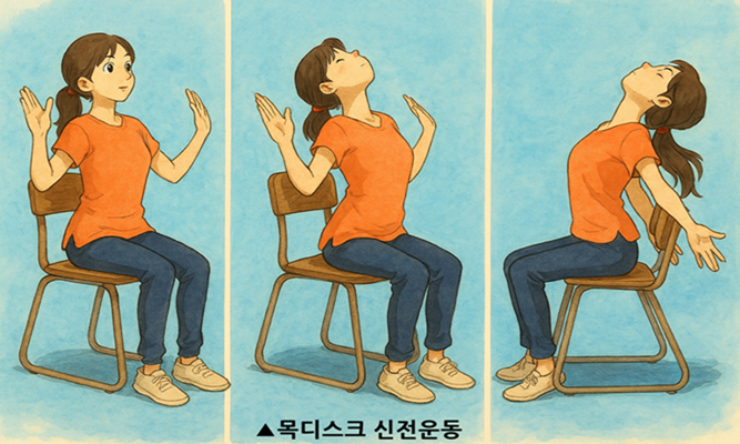 3. 일상 생활에서 항상 바른 자세를 유지하도록 세심한 주의를 기울이고 노력한다. 컴퓨터 모니터의 높이를 목에 부담이 없도록 적절하게 조정하고, 장시간 스마트폰 보는 습관을 없애고, TV 모니터의 적절한 높이 조절, 의자에 척추를 곧게 세우고 바르게 앉는 자세를 습관으로 붙이고, 그리고 틈나는대로 경추와 요추 등을 강화하는 신전운동을 생활습관으로 붙이는 노력을 기울인다. 신전동작과 걷기 운동은 척추를 강화하고 바른 자세를 유지하는데 매우 효과적인 운동이다. 무엇보다도 자신의 몸과 정신을 건강하게 관리 유지하는 일은, 자신을 진정 사랑하는 일이며 자기 자신에게 스스로 사랑을 베푸는 최소한의 성의라 할 것이다. 끝 (2025. 4.13)