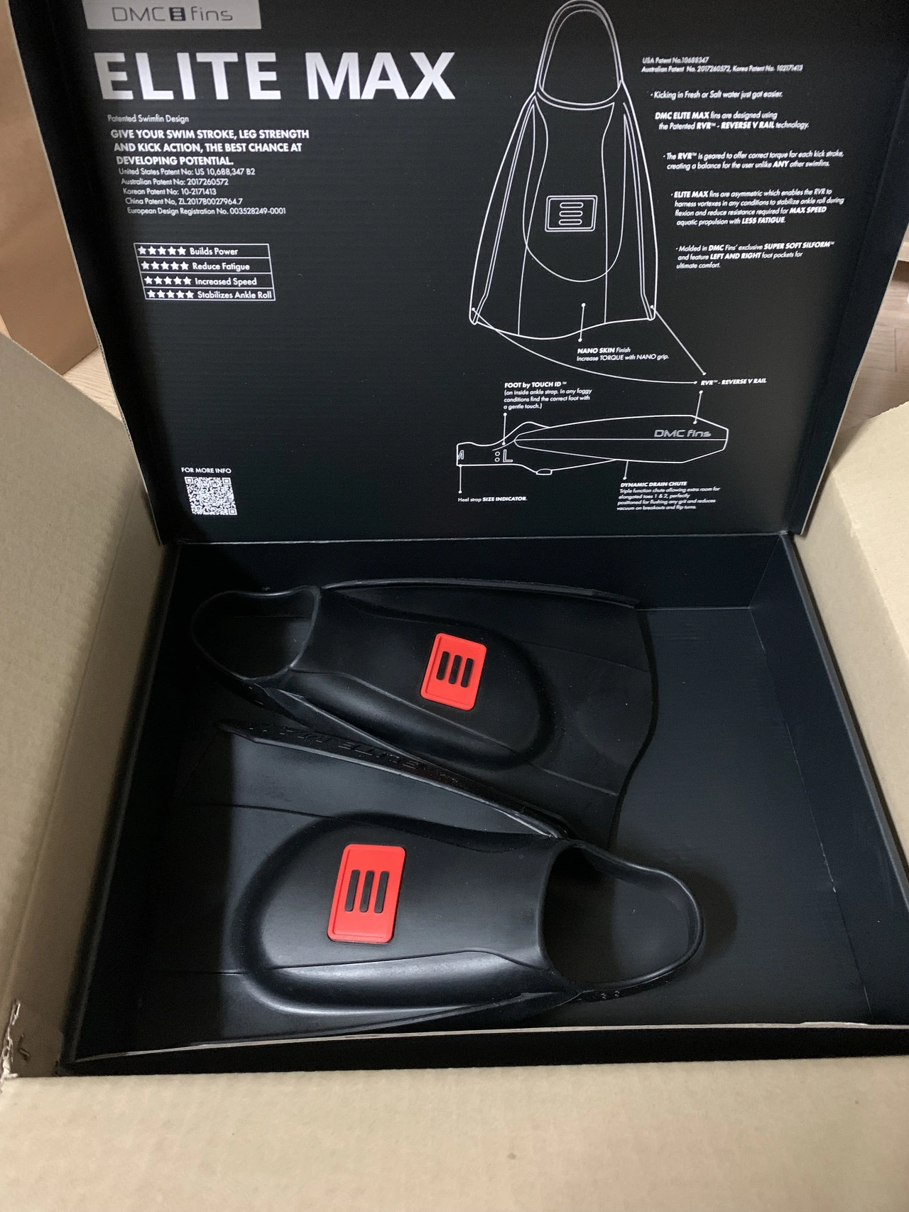 수영을 끝내고 집으로 돌아오며 유튜브에 나와 있는 웬만한 오리발 리뷰 영상들은 다 뒤져보고, 수영을 배우고 있는 지인에게도 물어보며 나에게 맞는 좋은 오리발을 수소문했다. 그렇게 엄선된 나의 인생 첫 오리발. 바로 DMC사의 '엘리트 맥스 숏핀'이다. 가격은 10,9000원으로 내가 알아본 모델 중에는 꽤 고가의 상품이었다. 3만 원이면 오리발을 구할 수도 있었지만, 욕심이 작용한 결과였다. 이 제품은 후기도 좋고 수요도 많은지 남은 색상이 별로 없었다. 구매 전 오리발은 좀 더 과감한 색상(형광색)을 도전해보고 싶은 마음이 컸지만 이미 품절이라 없었고, 남아 있는 색상은 너무나도 평범한 검정색 하나뿐이었다. 다른 색상을 구하지 못해 못내 아쉬웠지만, 사실 아직 내 레벨에선 여전히 검정이 딱 맞는다는 사실을 이내 알아차렸다. 그냥 검정이더라도 나름 빨간색 포인트가 들어가 있고 멋들어졌다.
