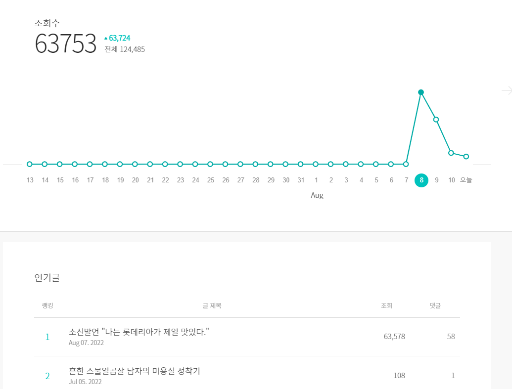 이런 조회수 뽕을 한번 느끼게 되면 앞으로도 더 열심히 써야겠다는 열망이 불타오르게 된다.