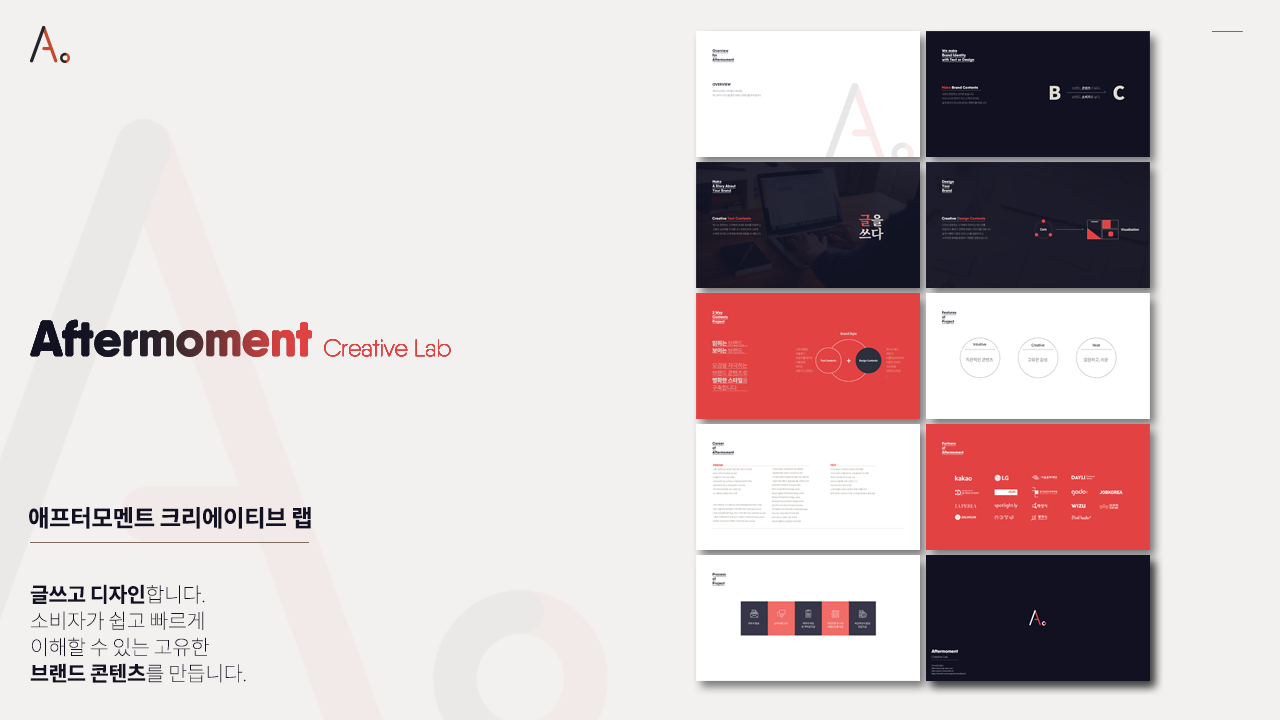그래서 그 길로 세무서로 슝슝 달려가서 애프터모멘트라고 이름을 바꾸고 그냥 제 일을 하기로 했답니다. (원래는 프레젠티지라는 이름으로 PPT디자인이나 깔짝깔짝받으며 지내고있었습니다) 애프터 모멘트는 '그 순간 이후' 를 의미하는데....여기서 '그 순간'은 위에 표기된 A의 순간 이 후를 의미한답니다. 결과적으론 모회사에 들어가서 받았을 연봉보다 조금 웃도는 매출을 잘 내면서 잠도 잘 못자고 이러고 지내고 있죠. 즐겁고 행복하고 힘들고 쑤십니다. 크리에이티브랩..을 뒤에 붙인 이유는 디자인만 하는 게 아니라, 시스템이나 제 컨텐츠를 다루고 싶었기 때문입니당. 지금이야 브랜드 관련 외주프로젝트를 주로 진행하지만.. 2018년 새해부턴 조금 다른 결로 사업을 운영해보고자 합니당.