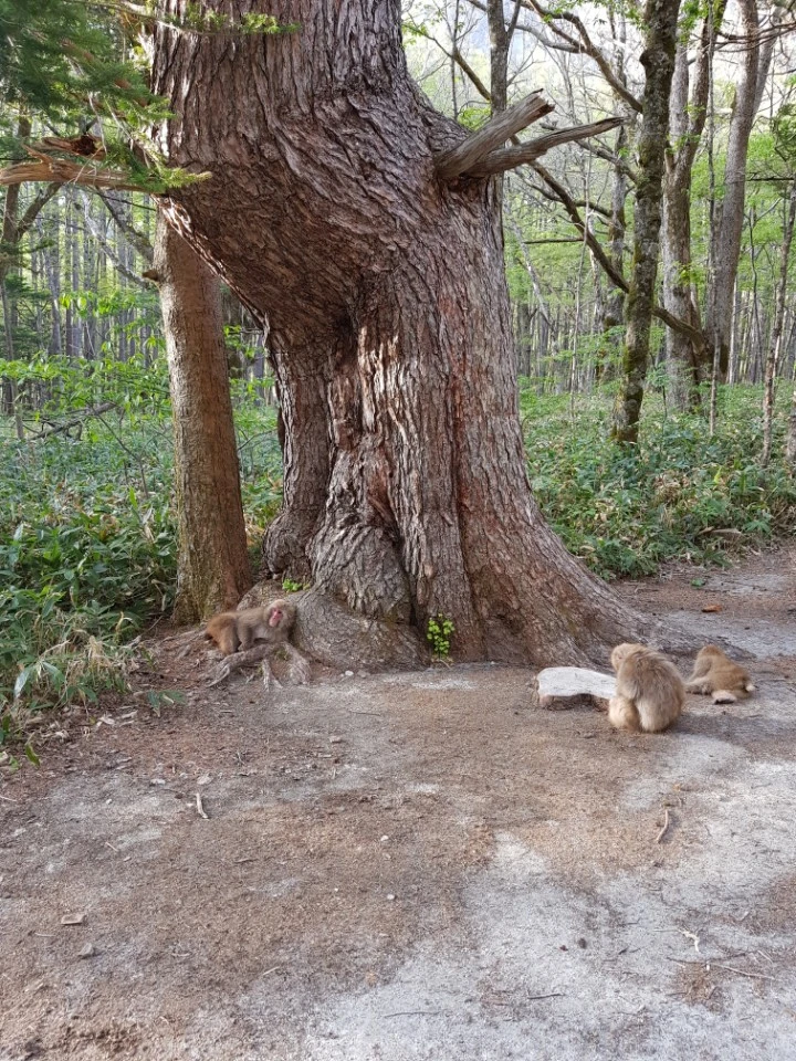 막 원숭이 나와버리고 그러니까 더욱 즐겁잖아요. 게다가 첫째날은 거의 평지여서 '에이 이게 뭐야~~' 스러운 정도였습니다. 숙소가는 길에 있던 일본원숭이인데 평화의 상징마냥 널브러져있더라구요. 하지만 배가 고파서 샤샥 찍고 빠른걸음으로 숙소로 갔습니다. 사실 저것도 무빙샷이예요. 배가 너무 고팠거든요.