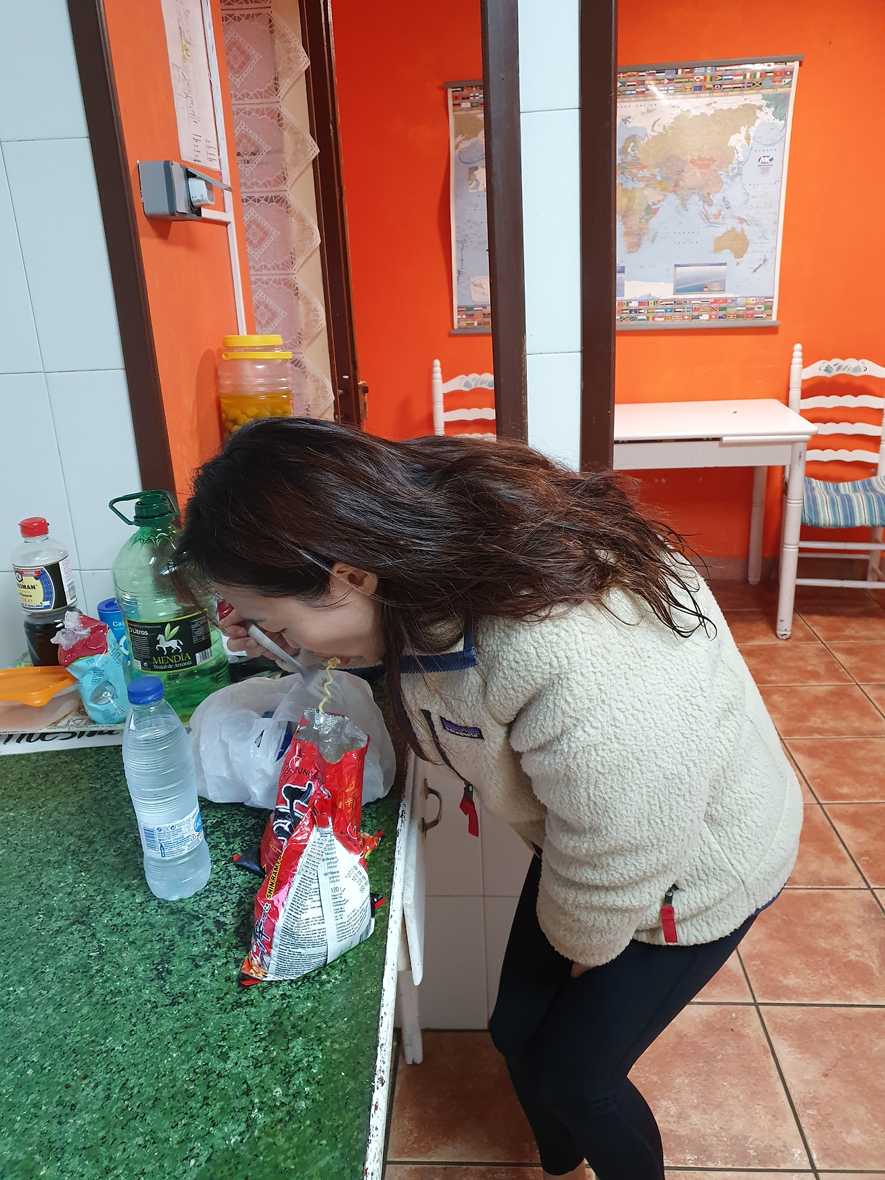 여러분. 여행에서 제일 맛있는 건 뭐다? 맛집? 빠에야. 노 그런거 아니다. 배고픔에 절망하고 있을 무렵 주머니 속에서 느껴진 구겨진 부서진 쿠키 하나와 몇 주간의 고춧가루 함량미달로 인해 입에서 기름기가 사라지지 않을 무렵 등장해주는 신라면 하나.