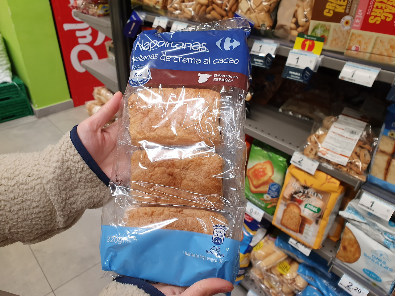 세 번째 친구는 초코빵입니다. 나중에 마트에서 이 아이를 다시 발견했어. 8개에 1.2유로더라구요. 그러니까 한 개에 160원 남짓 하는 되게 불량한 초코빵인거지. 세비야의 잊지 못할 우리 주인 할머니가 아침식사로 주신 건데 우린 항상 배고픔을 경계해야 했으니 비상용으로 몇 개 챙긴 겁니다.
