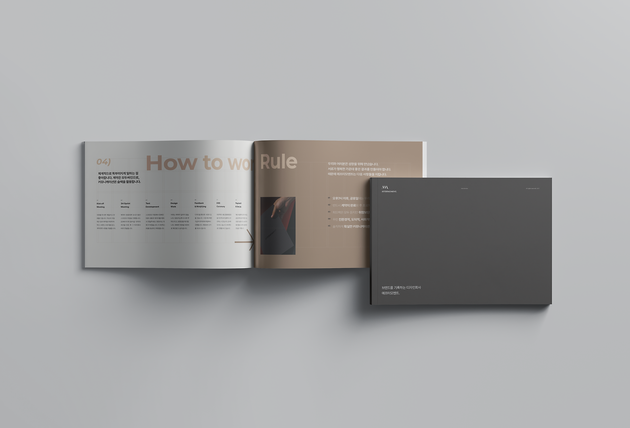 우린 '유형의 결과물'을 만들어야 하니까. 상세한 형태를 먼저 정해요. 그리고 내부에 들어갈 디자인이나 내용에 대한 컨셉을 정리합니다. 기획안엔 여러가지 내용이 들어가지만 가장 우선되어야 할 것은 역시 '수신자'에 대한 특성과 '소개서'의 목적입니다.
