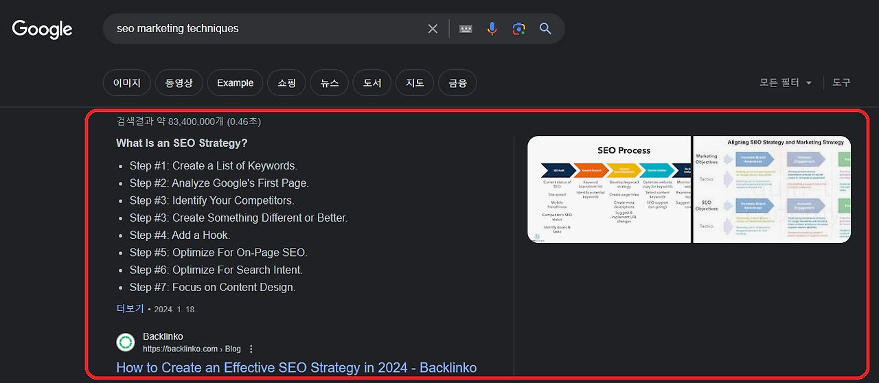 피처드 스니펫은 구글이 사용자의 검색 의도를 가장 정확하게 충족하는 페이지를 선택하여 해당 페이지의 요약을 제공하는 특별한 검색 결과 형태다.