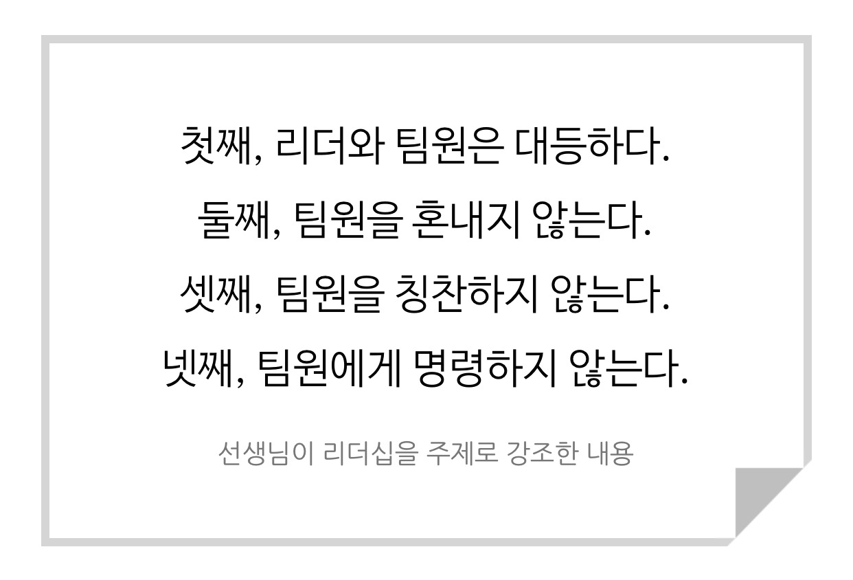 나에게는 '팀원을 칭찬하지 않는다.' 라는