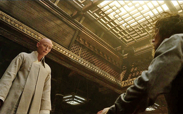 틸다 스윈튼은 이러한 닥터 스트레인지에게 신비로운 힘과 경험을 선사하는 완벽하게 민 머리의 수도승 같은 이미지로 이전의 "올란도"에서 맡았던 미스테리어스 한 수백 년 이상을 살아가는 마법사의 역할을 잘 구현해낸다. 그가 아직도 활발한 활동을 하는 배우로서 이렇게 이 배역을 맡은 것이 또한 너무도 감사할 정도였다. 그만큼 그 캐릭터를 성공적으로 대체할 현존하는 그 어떤 배우도 전혀 떠오르지 않을 정도였다. 사대주의를 갖고 이렇게 생각하는 것이 아니라, 정말 맞는 딱 맞는 배역이었다는 이야기이다. 화이트 워시라고 하는 비난이 필요한 영화가 되기엔 그의 연기가 너무 훌륭했다.