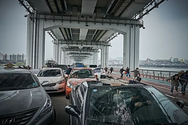건물이 무너지고 차가 서로 부딪치는 그 모든 장면의 품질이 할리우드 산 재난 영화 대비 크게 떨어지는 바가 없다는데 일면 압도당했다. 이 작품은 이미 이 도입 부분만으로도 성공을 거머쥔 것이나 다름없어 보였다.